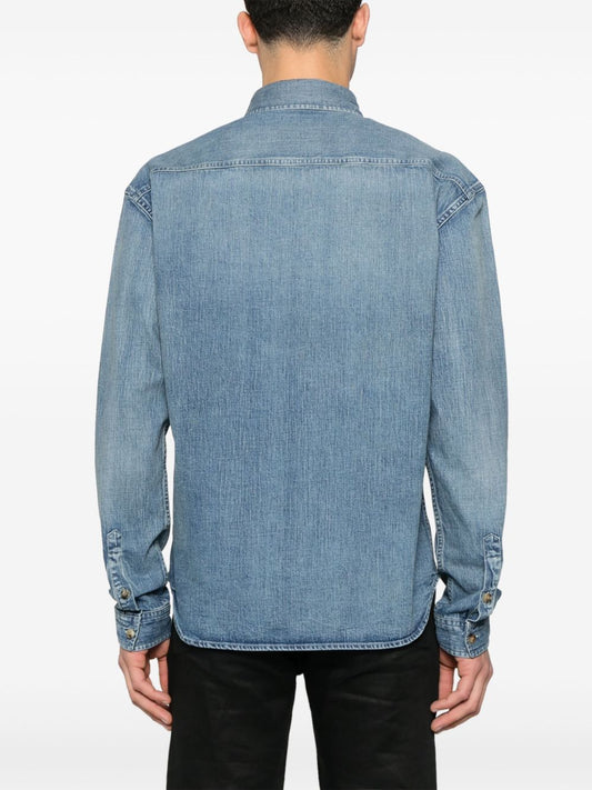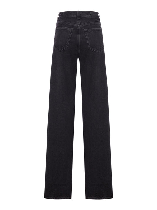 Saint Laurent Women Wide-Leg Denim Jeans With A V-Waisted Waist