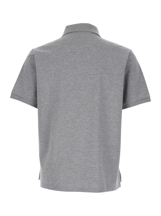Saint Laurent Men Grey Polo Shirt With Tone-On-Tone Embroidered Logo On The Front In Cotton Blend Man