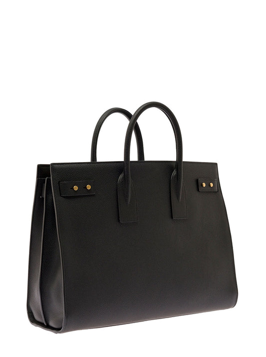 Saint Laurent Men Black Sac De Jour Thin Large Bag In Grained Leather Saint Laurent Man
