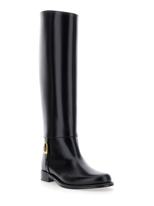 Saint Laurent Women Black Boots With Side Metal Plate In Leather Woman