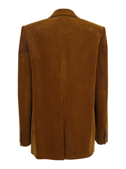 Saint Laurent Women Brown Double-Breasted Jacket With Notched Revers And In Corduroy Woman