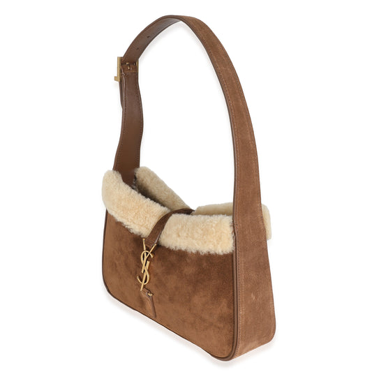 SAINT LAURENT - Dark Cigar Suede Natural Beige Shearling Le 5 A 7 Hobo