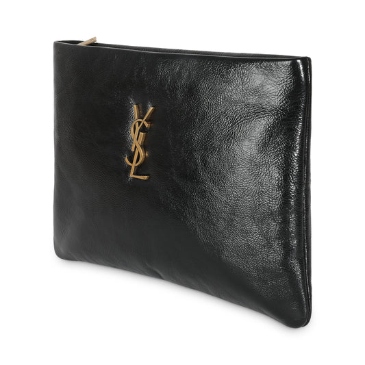 SAINT LAURENT - Black Shiny Leather Small Calypso Pillow Pouch