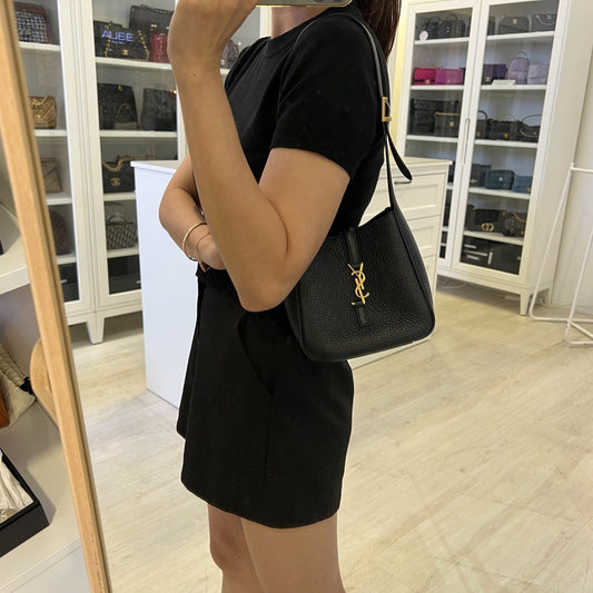 Saint Laurent YSL Small Le 5 À 7 Supple Hobo Bag in Black Grained Leather and GHW