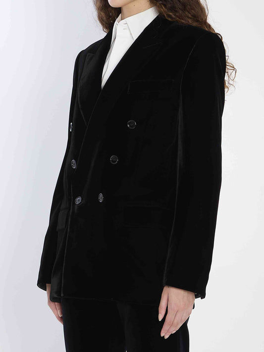 Saint Laurent Women Bomber Jacket In Hammered Leather And Shearling