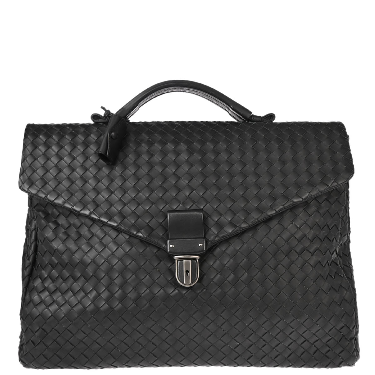 Bottega Veneta Black Intrecciato Briefcase Handbag