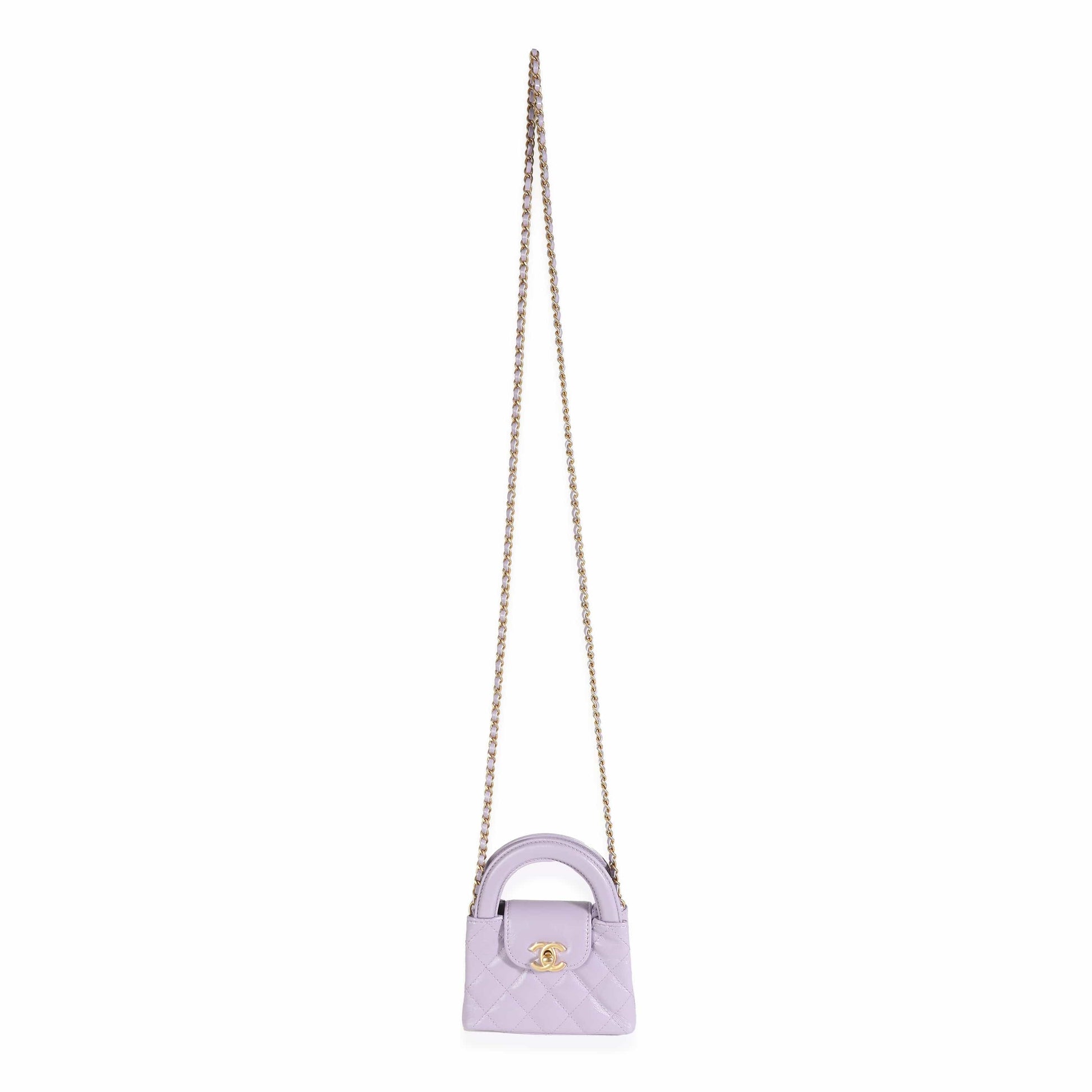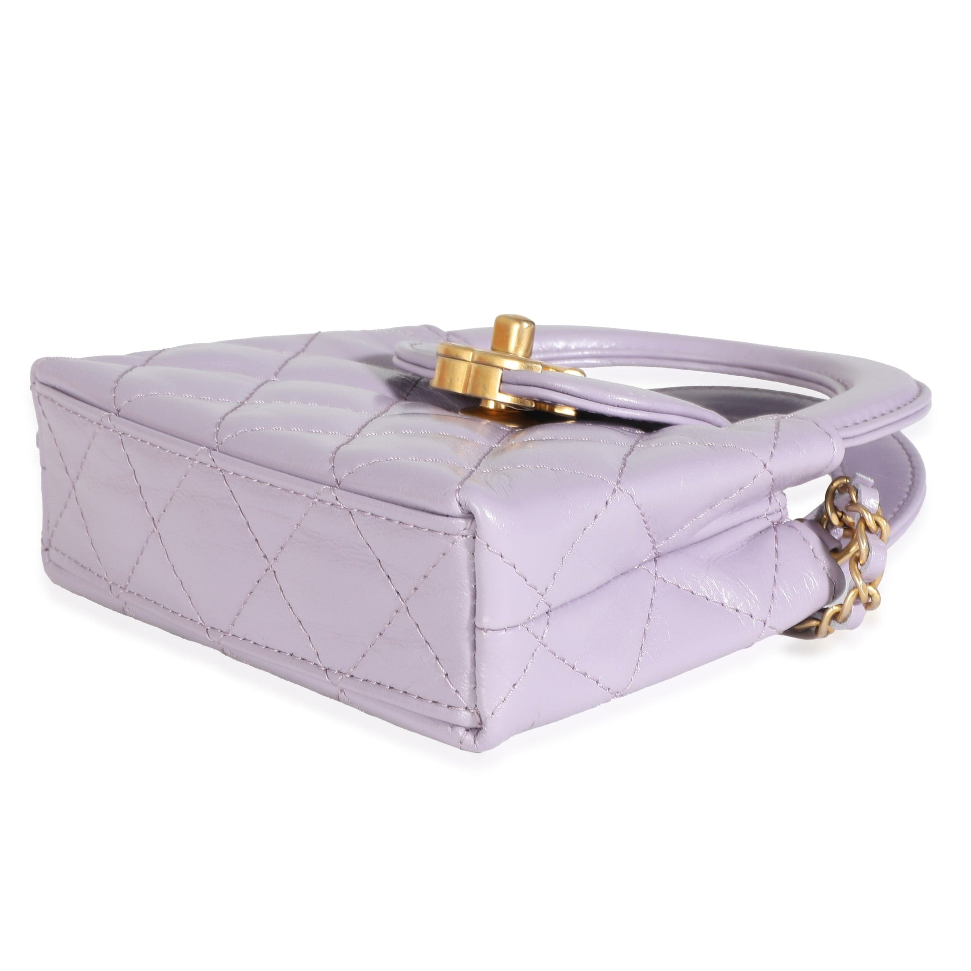 24P Light Purple Quilted Shiny Aged Calfskin Mini Nano Kelly Shopper