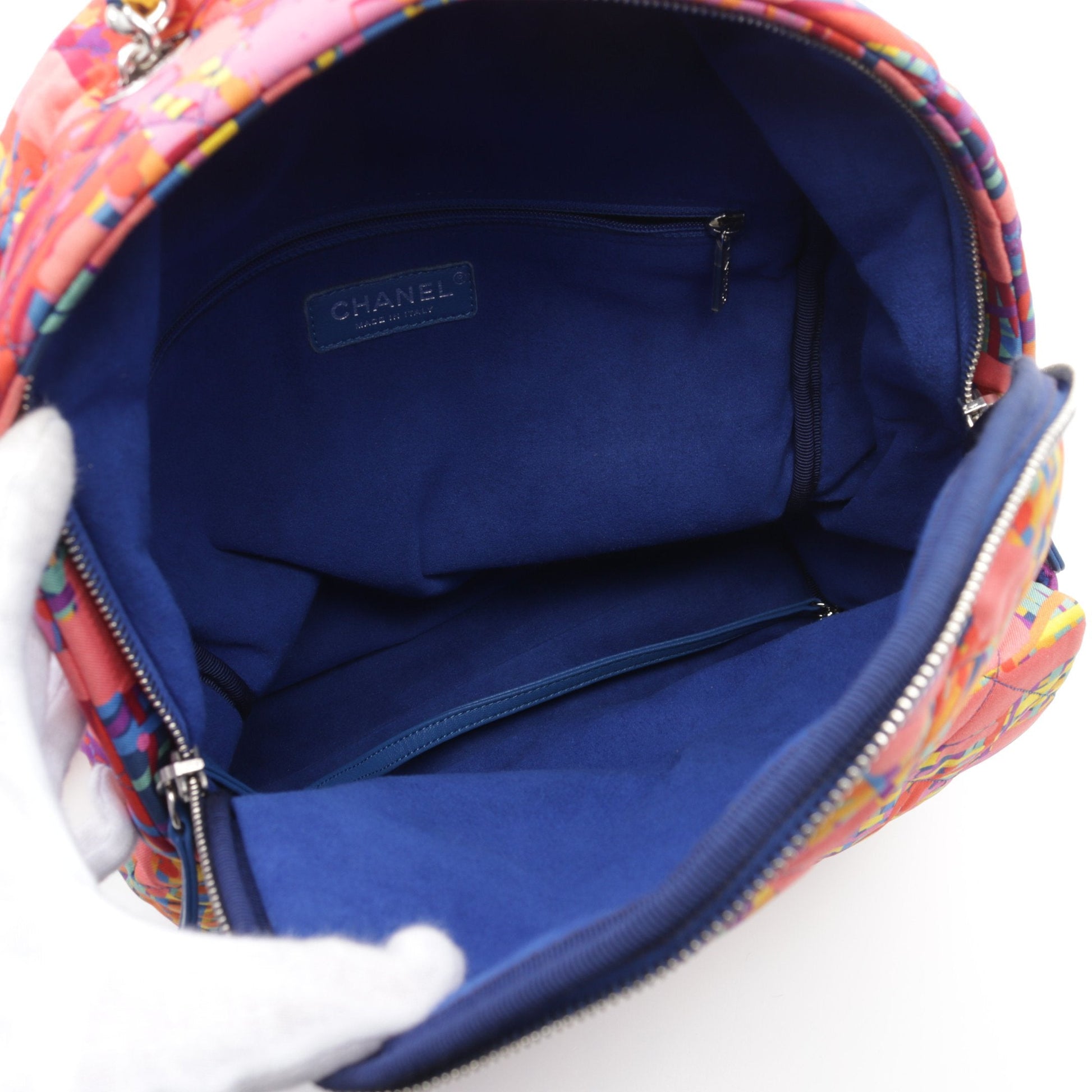 Chanel Backpack Rucksack Nylon Coral orange Multicolor Silver hardware