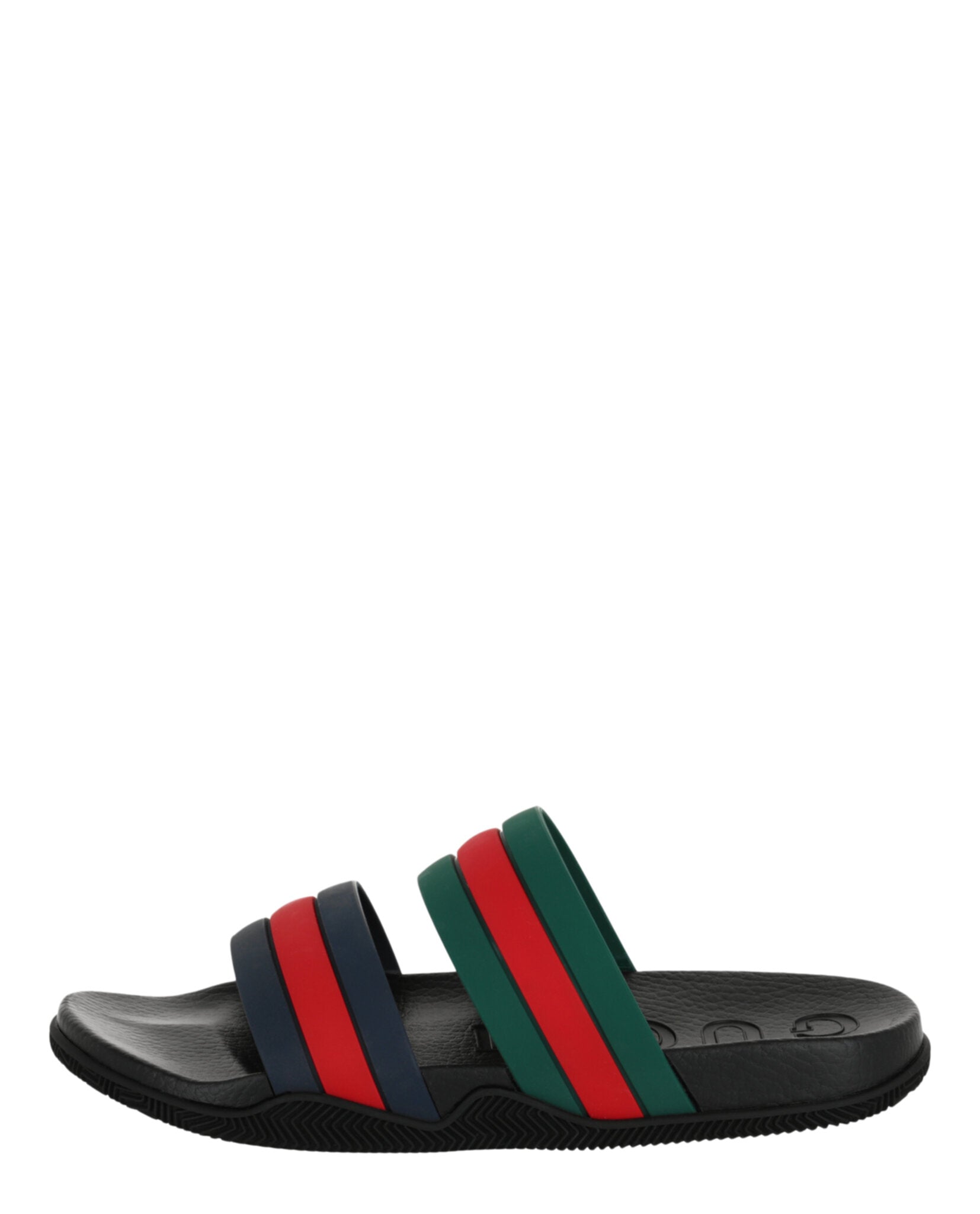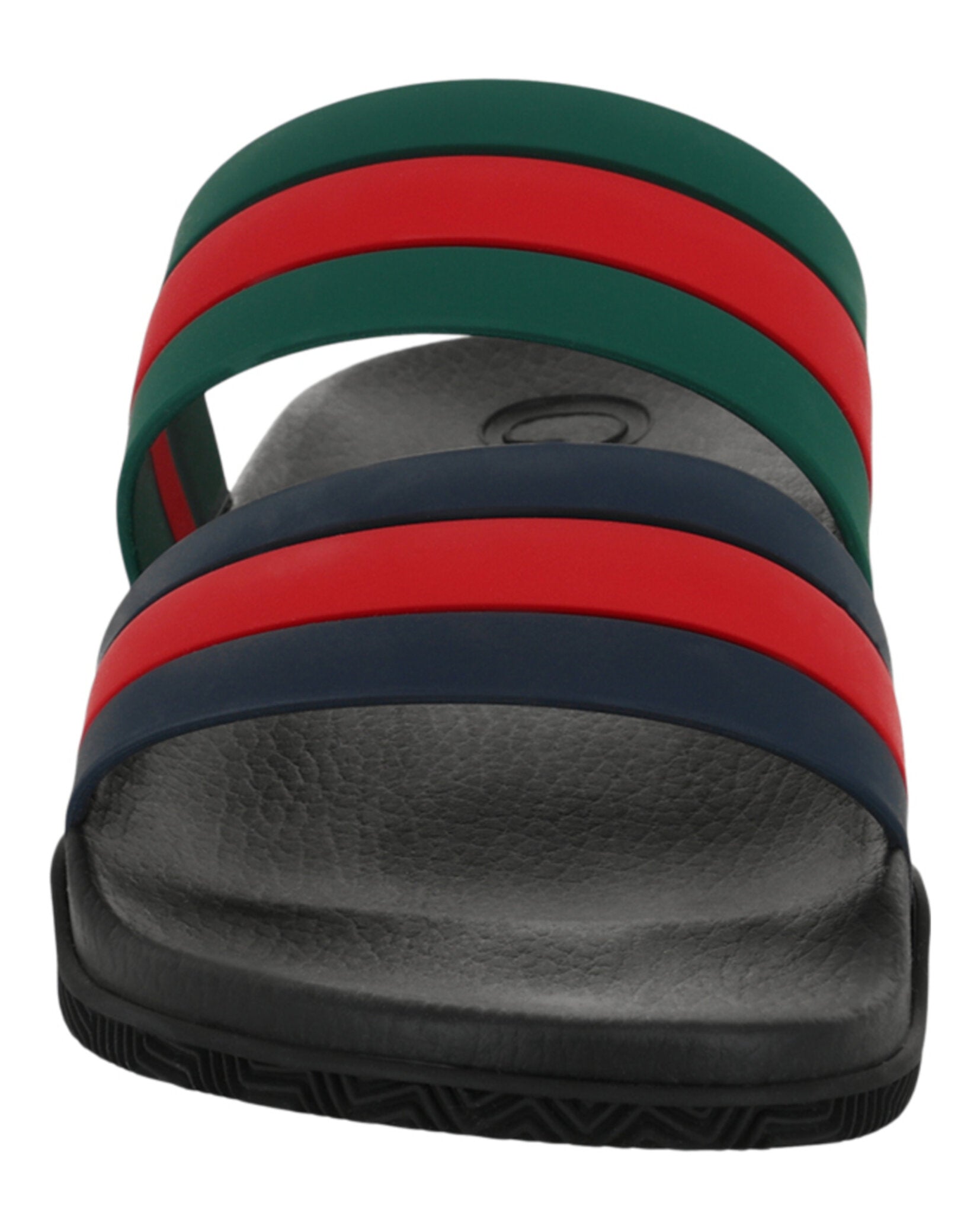 Platform height - 1.4375" | Slides on | Classic web motif across vamp | Round toe | Spot clean | Upper - 100% Rubber; Lower - 100% Rubber | Made in ItalyMeasurments -
