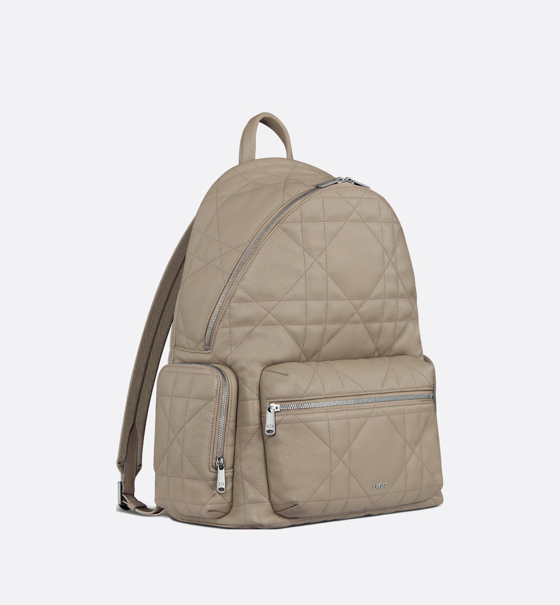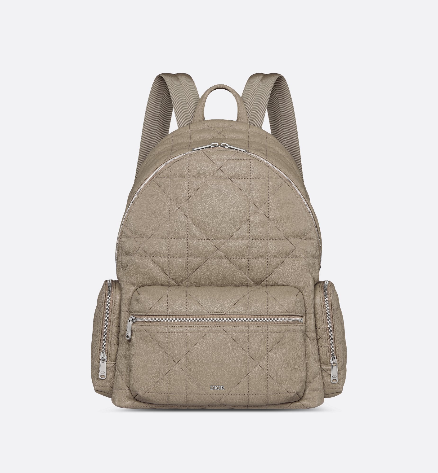 New for Winter 2024, the backpack stands out with a design that combines modernity and couture spirit. Crafted in beige Maxicannage calfskin for a new take on the iconic House motif, it is enhanced by the Dior signature on the front. It features a spacious zip compartment to hold all the essentials, while the front pocket and side zip pockets provide easy access to a wallet, keys, headphones or phone. The practical backpack will add the finishing touch to any outfit.