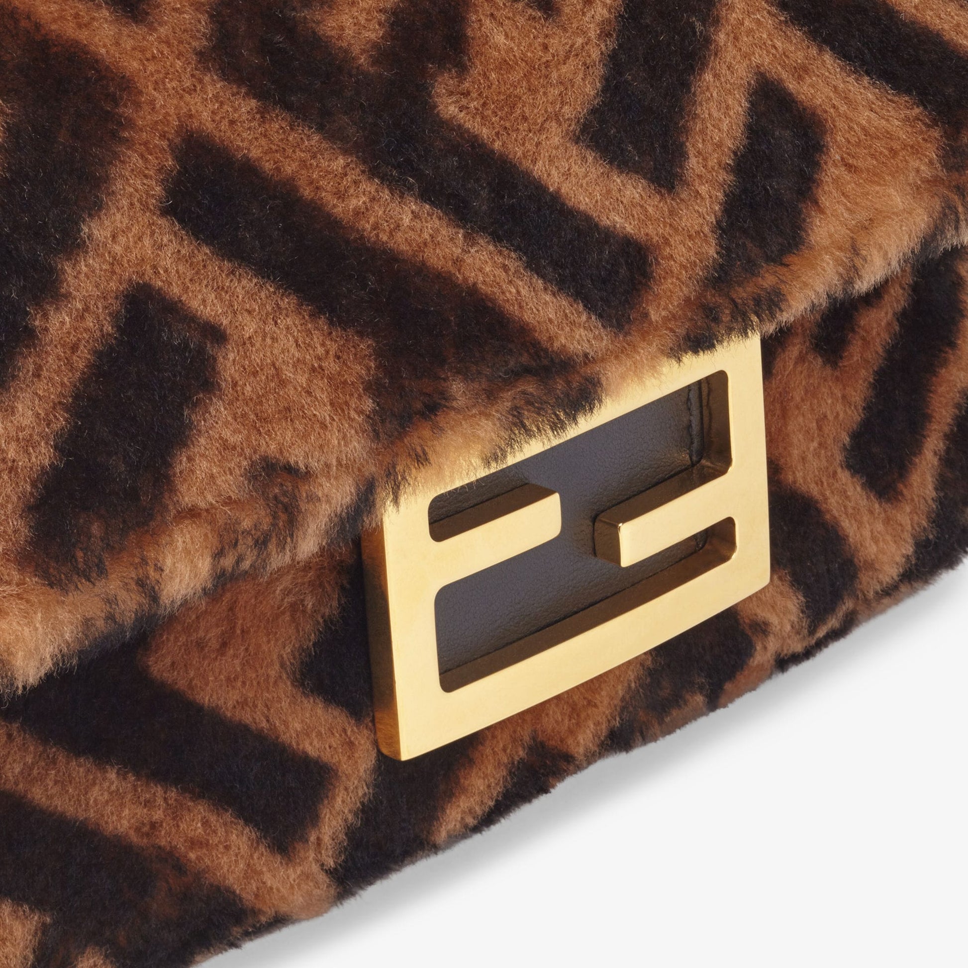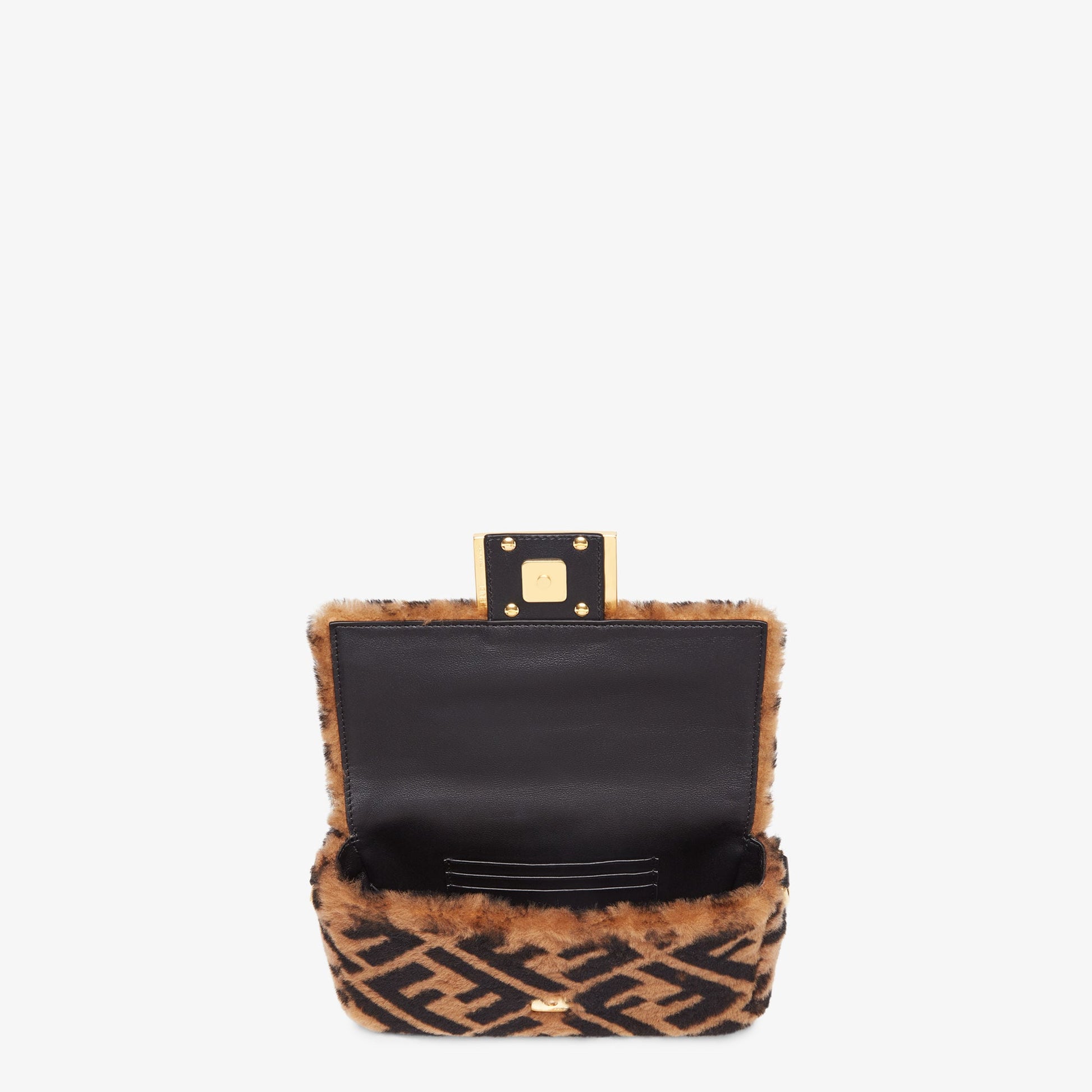 Iconic mini Baguette bag made from soft sheepskin with a brown and black FF motif print. Decorated with an FF clasp.