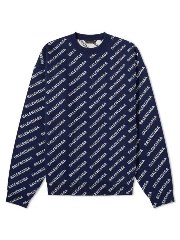 Balenciaga Allover Logo Crew Sweatshirt Navy