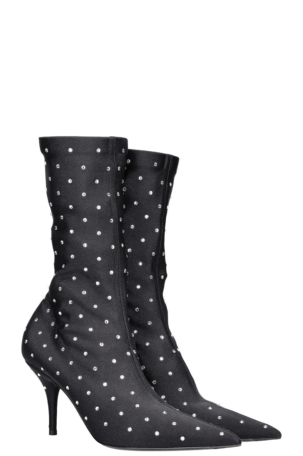 BALENCIAGA Knife 80 Sock Boots Black Satin Crystal