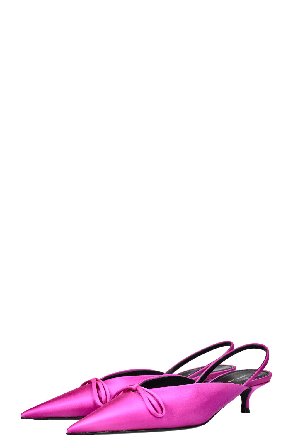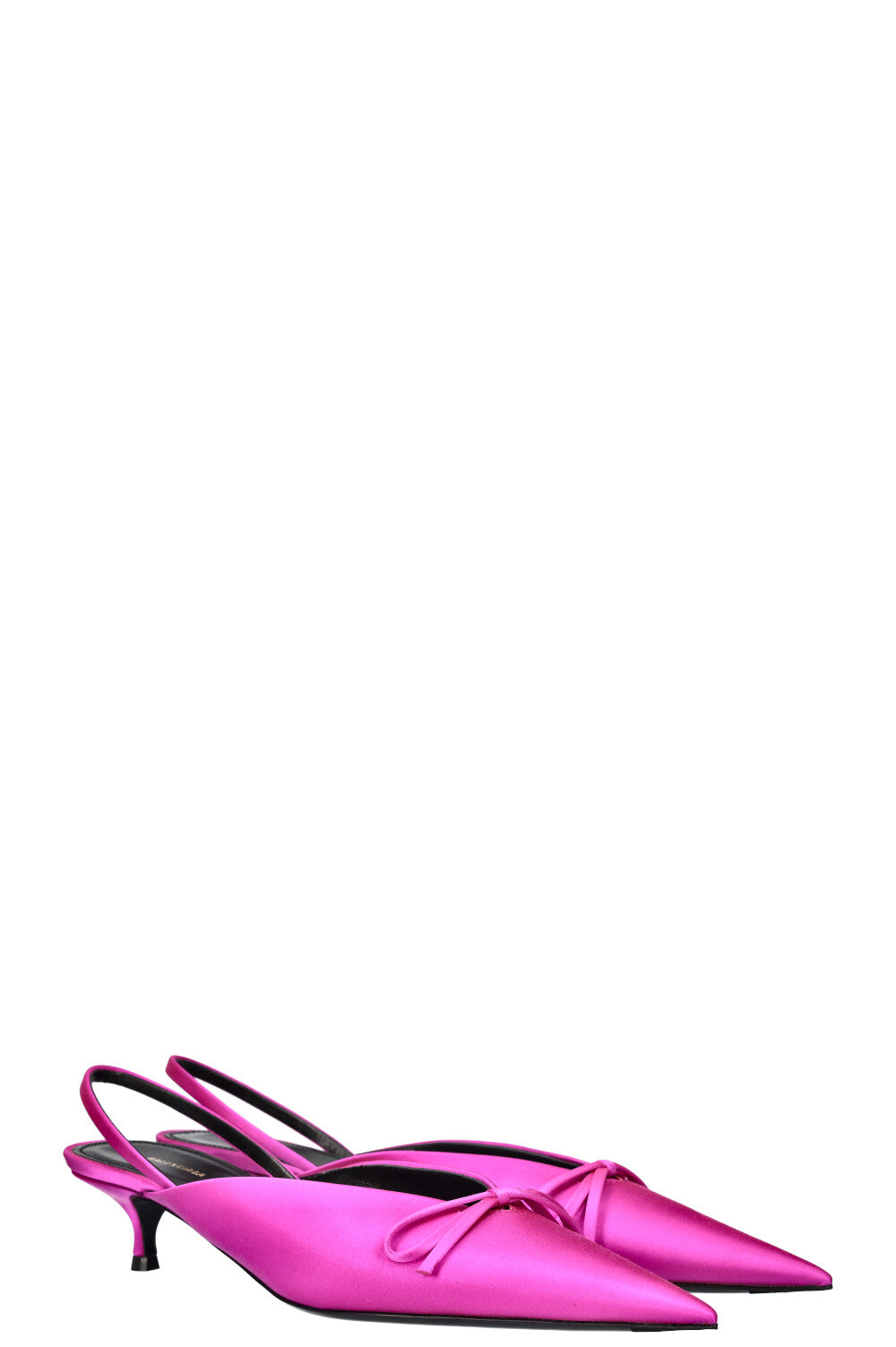 We Love: Edgy Knife Kitten Heels von Balenciaga. Aus weichem Satin in Hot Pink.