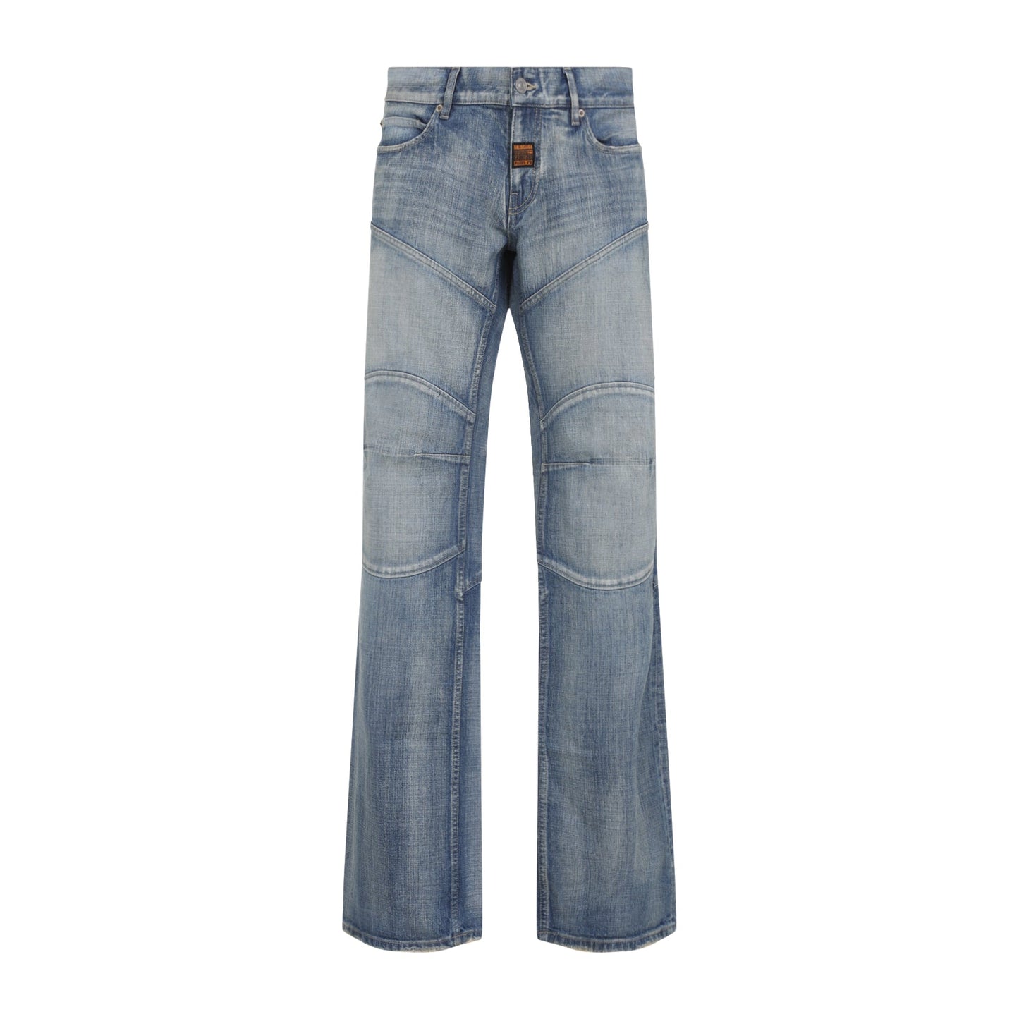 Balenciaga Fitted Low Waist Light Blue Cotton Jeans. Light blue cotton denim, low-waist, belt loops, front button and fly-zip fastening, branded label detail on the front, 5-pockets design, branded leather label at the back waist, used effect at the edges. Cotton | 100%COTTON