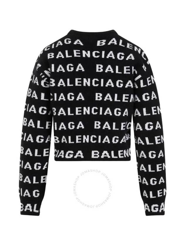 Balenciaga Intarsia All-Over Logo Crew Neck Knit Top Black
