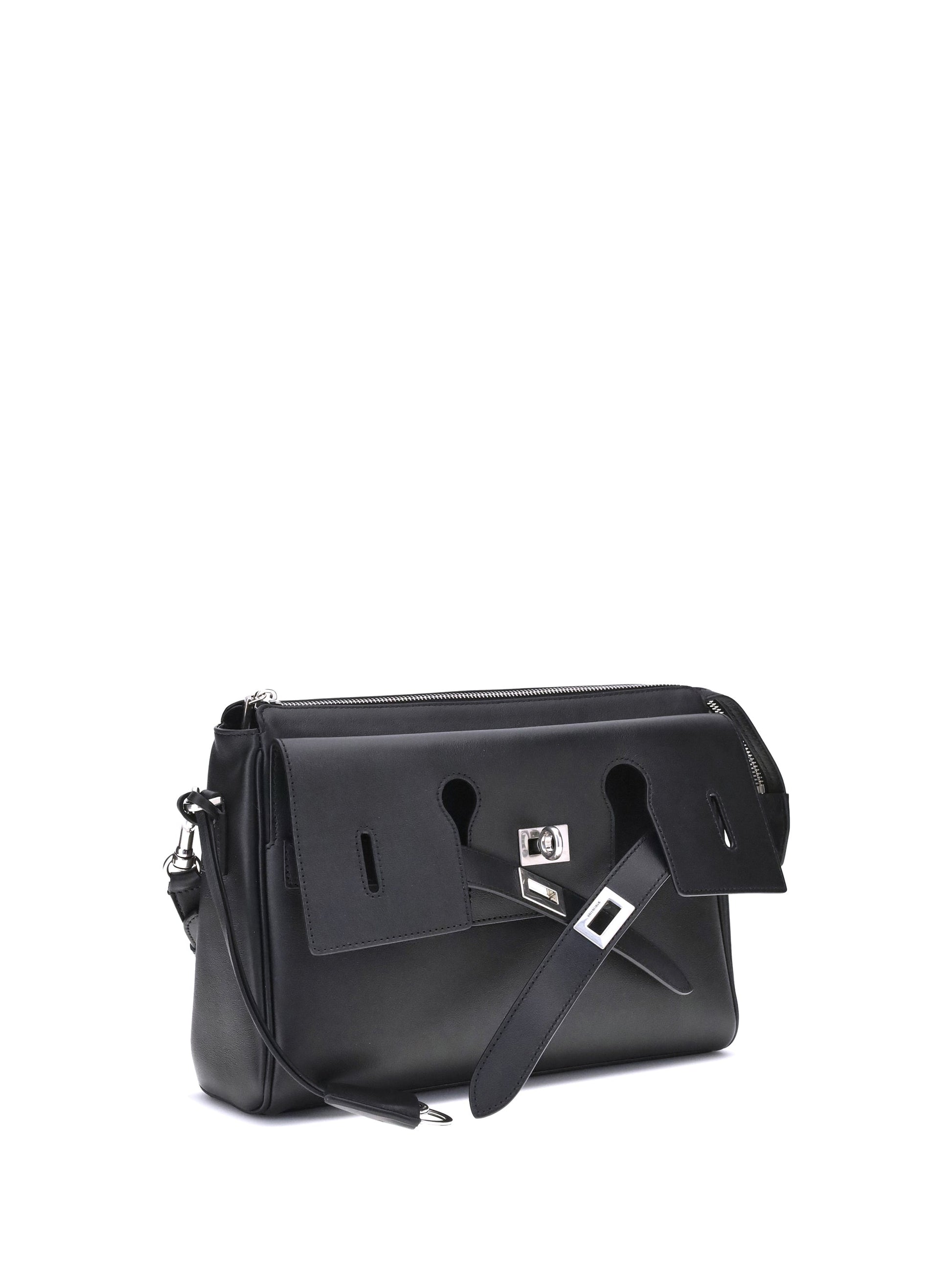 Balenciaga's Bel Air small Shoulder Bag combines functionality and contemporary style in a compact and versatile design, perfect for carrying on the shoulder or cross-body. Crafted with thoughtful details, it features a foil-embossed Balenciaga Paris logo on the back and a removable double-ring spiral key ring. Antique silver hardware adds a vintage touch, while the structure includes a front flat pocket, a back zip pocket, a main zip compartment and an interior flat pocket. The engraved logo on the closure system completes the iconic aesthetic of the model.