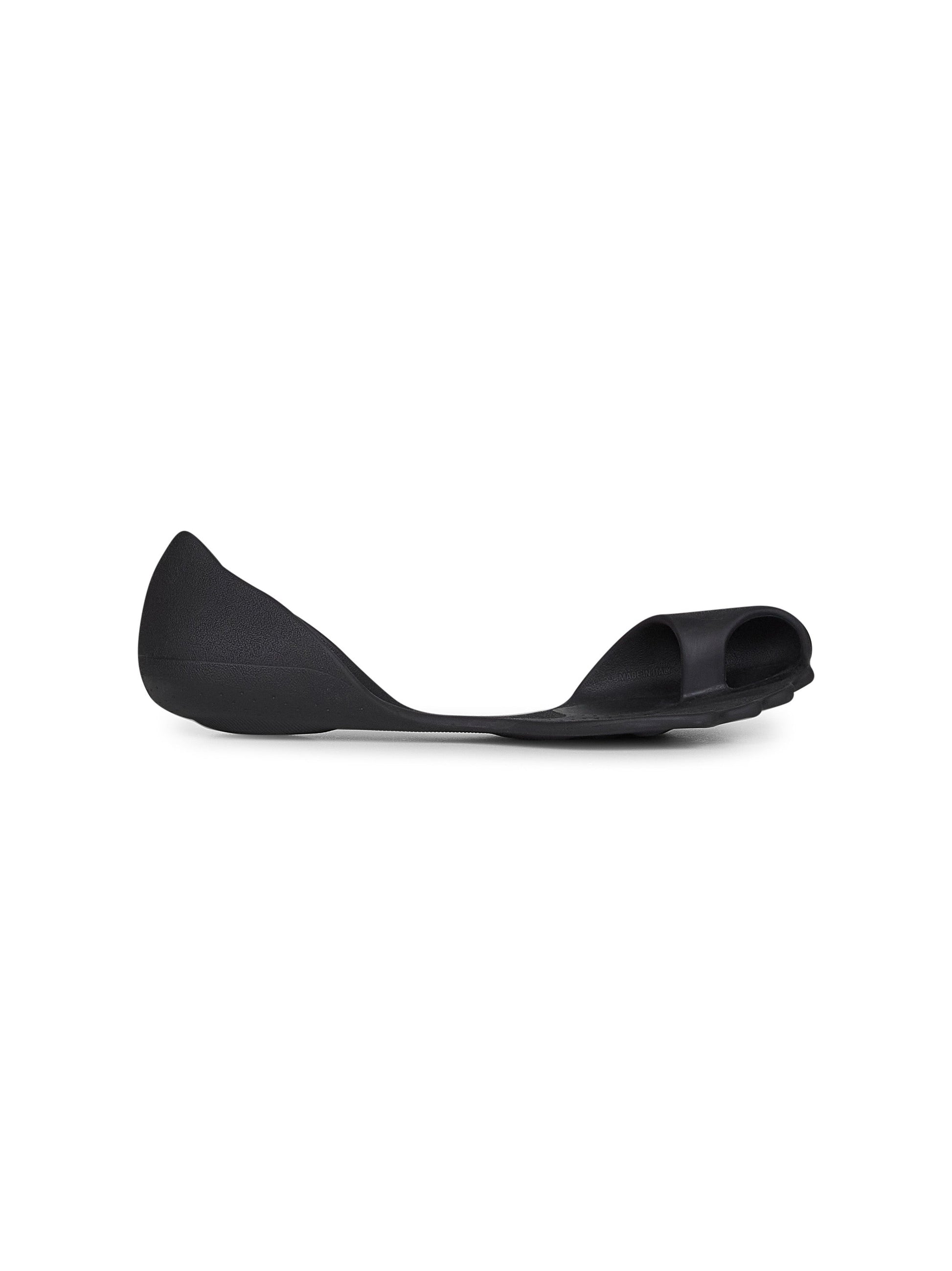 •Slip-on •Thong-like design •Balenciaga logo embossed at toe •Fully molded; nearly barfoot feel •Extra lightweight material •Black color •100% Polyethylene Vinyl Acetate (PEVA) •Made in Italy