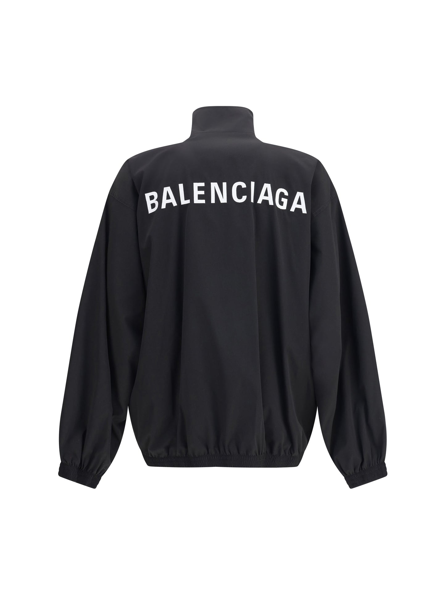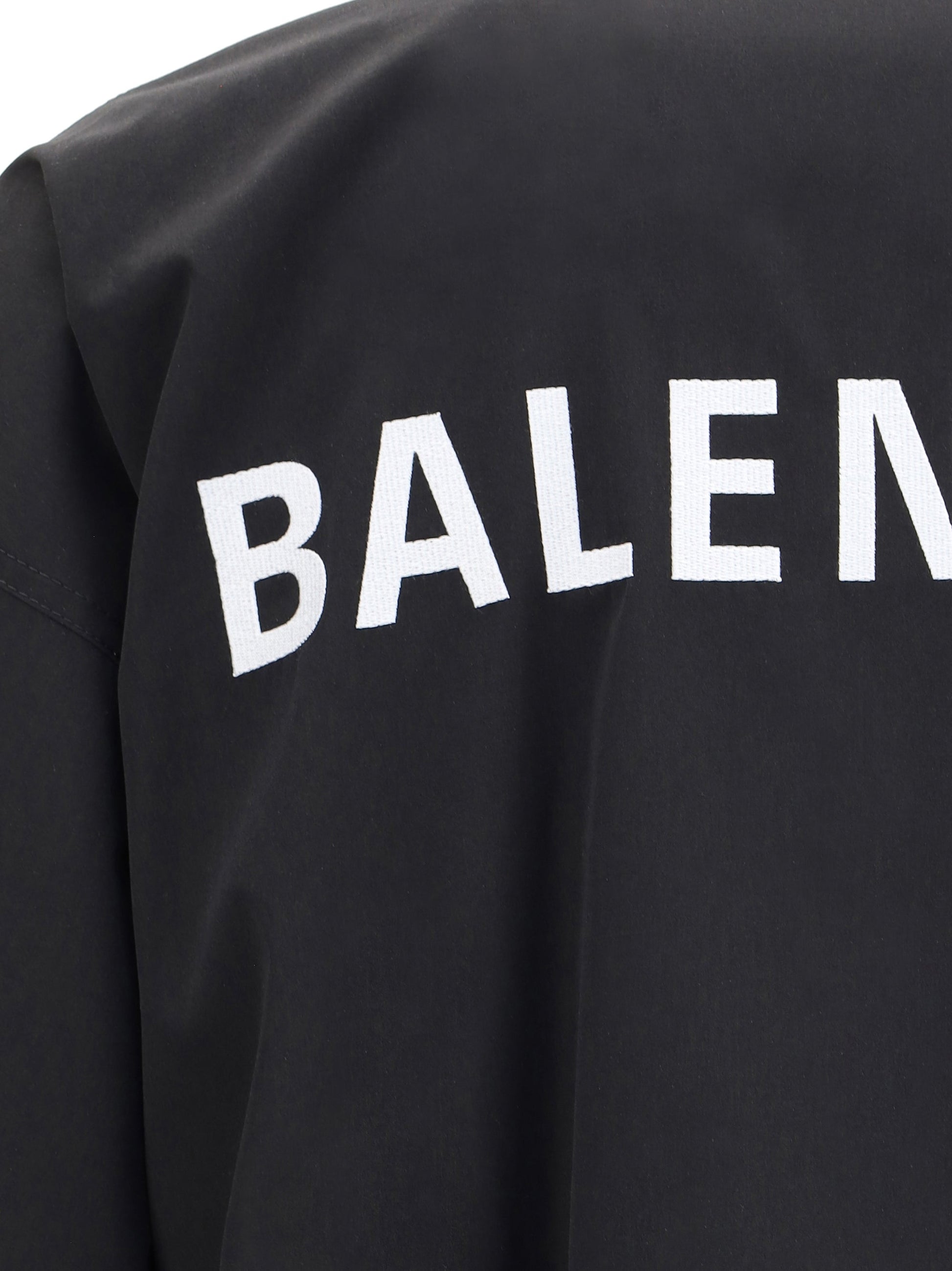 Balenciaga's Oversized Windbreaker Jacket is a garment with a bold, sporty aesthetic made from durable technical fabric. Featuring contrasting Balenciaga embroidery on the chest and back, it has a high collar, concealed front zipper closure and two zipper pockets on the front. Gathered elastic cuffs and hem ensure a comfortable fit, while the mesh lining ensures breathability and lightness.