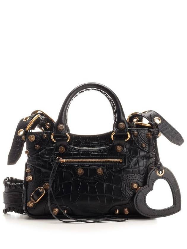 Product Name: Neo Cagole Small Crocodile Embossed Leather Tote Bag Black