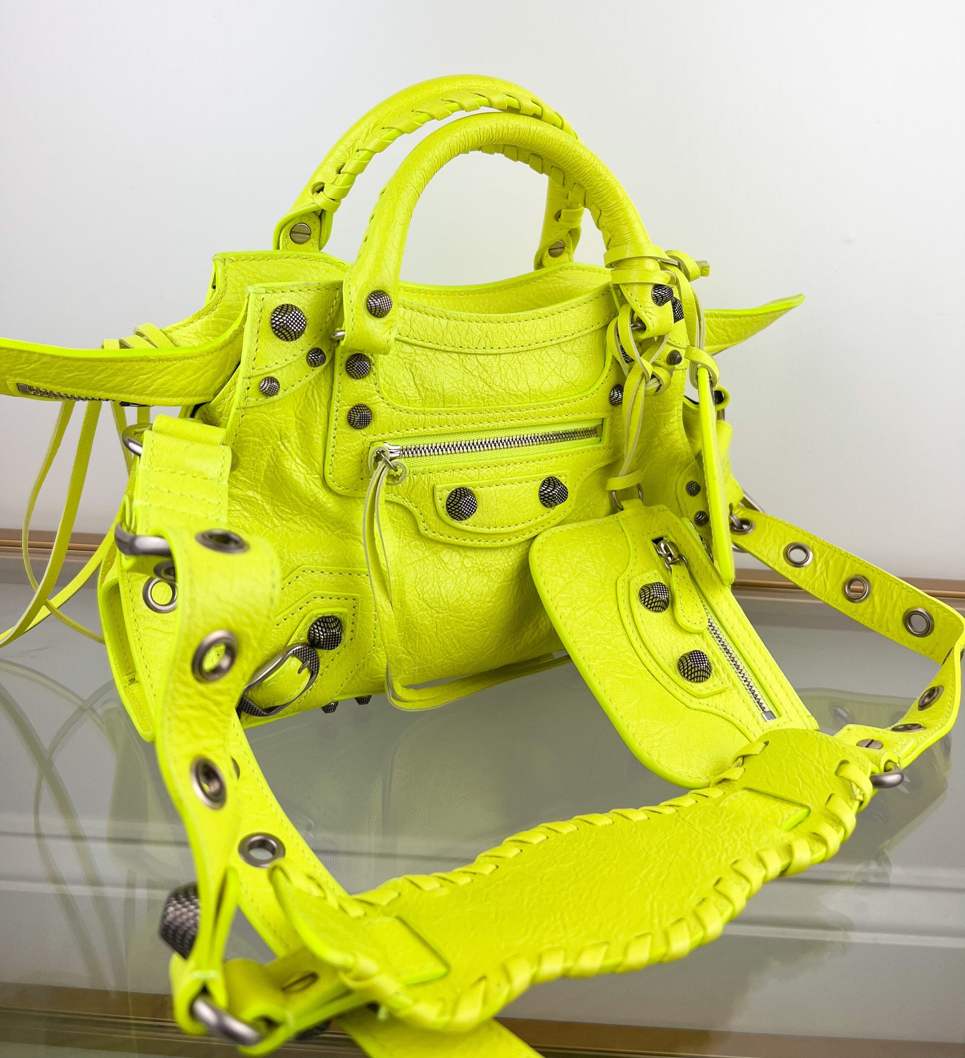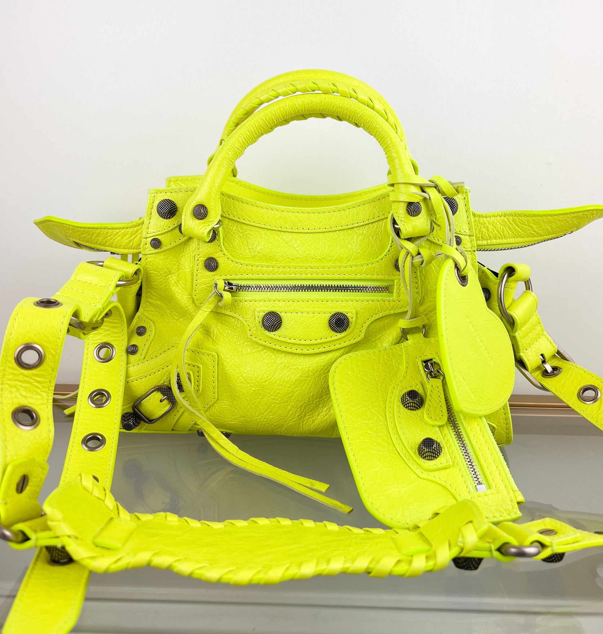 Balenciaga Neo Cagole XS Lambskin Satchel Bag Neon Green or . This Product is Like new with dust bag.