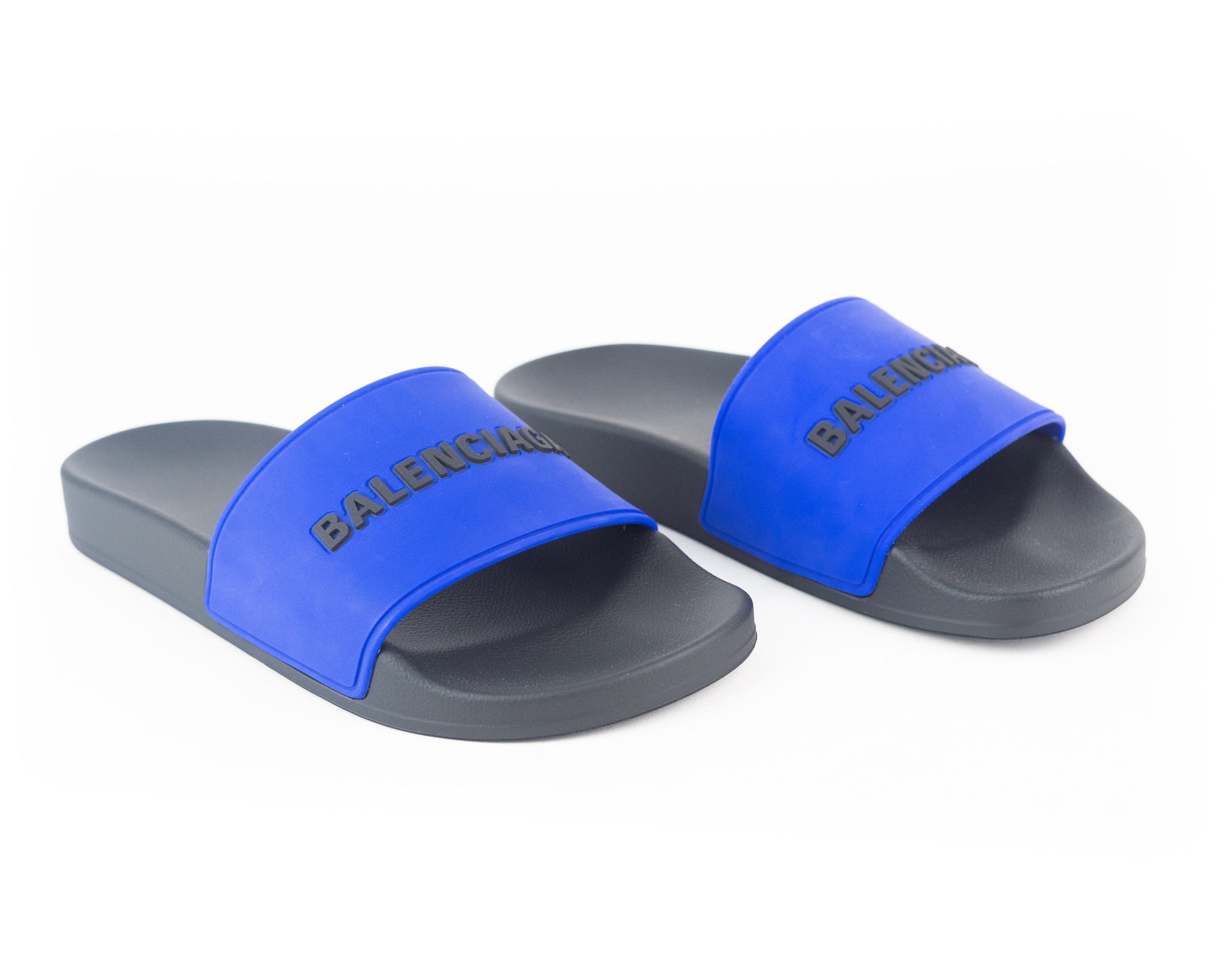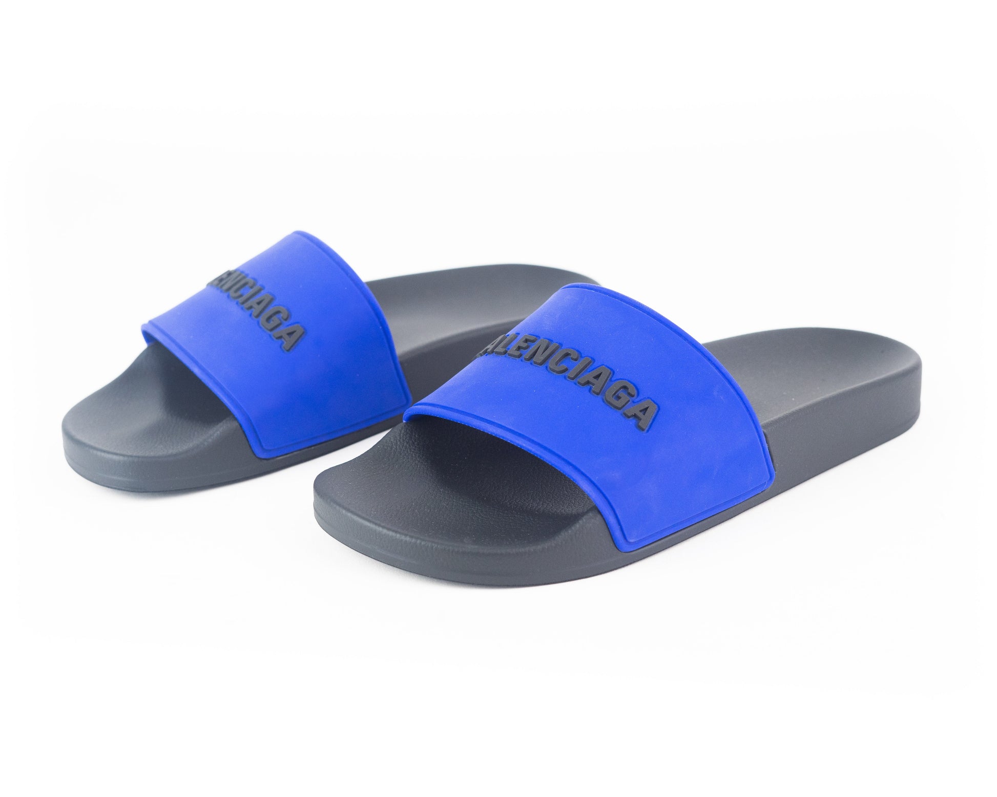 Balenciaga Pool Slides in black and blue size 37 or . This product is brand new with dust bag and box.
