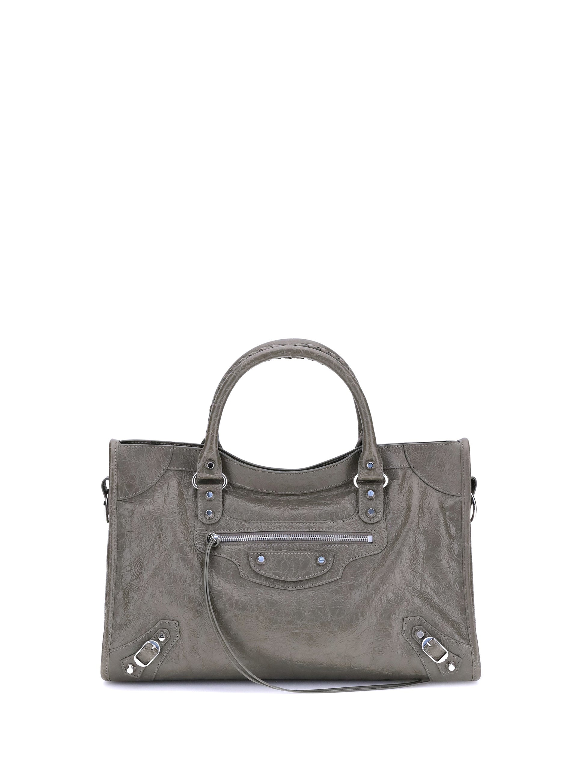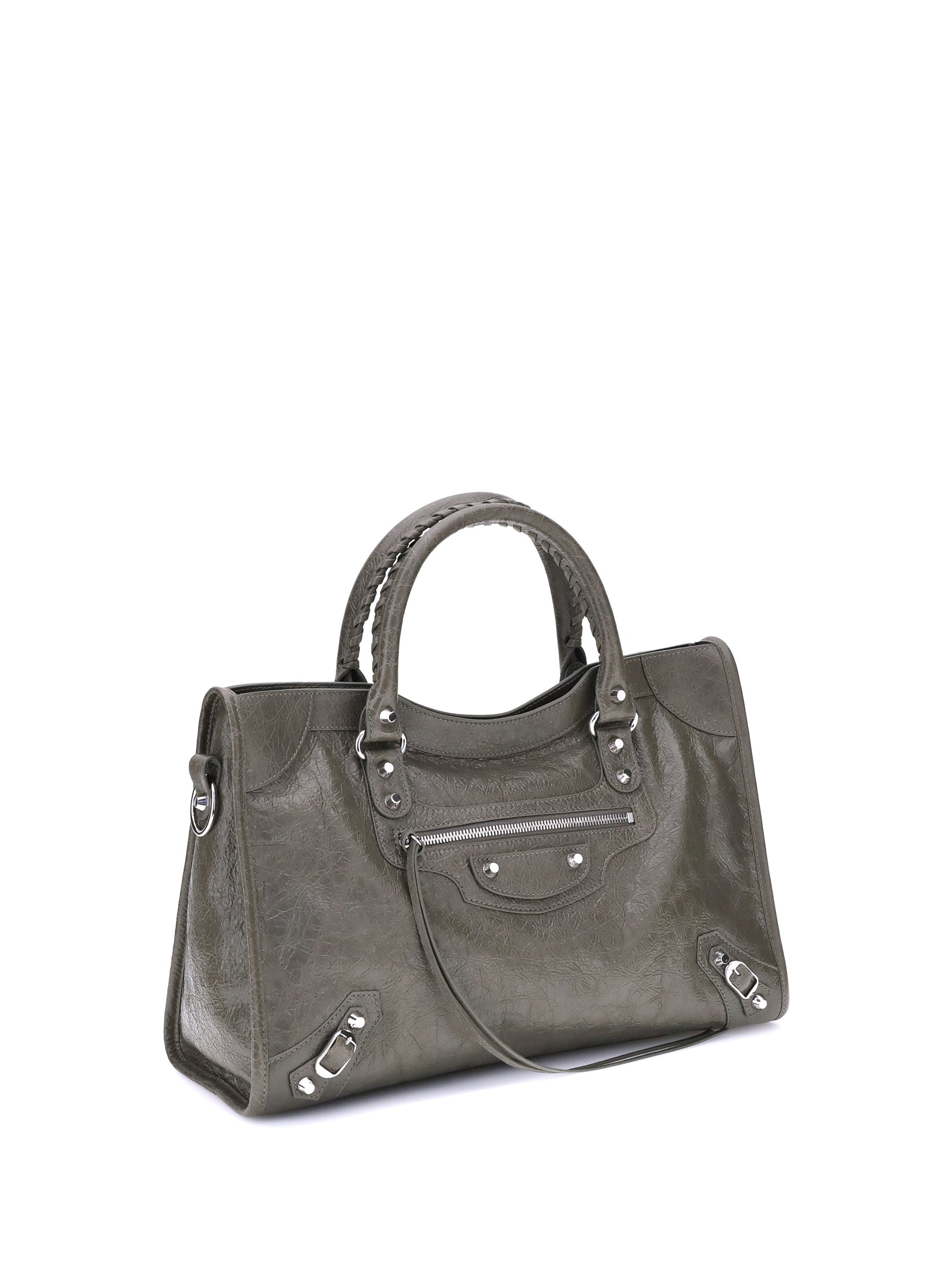 The Balenciaga Le City medium Shoulder Bag is a premium piece crafted from premium lambskin that combines elegance and functionality. Two hand-woven leather handles add a refined, artisanal touch, while the adjustable and removable shoulder strap allows for versatile hand-carrying or shoulder-worn styles. A zip closure and knotted leather zip pull add distinctive detail, while a front zip pocket provides quick access to essentials. Inside, a zip pocket and cotton canvas lining ensure organization and durability. Brass hardware completes the look, making this bag a luxurious accessory.