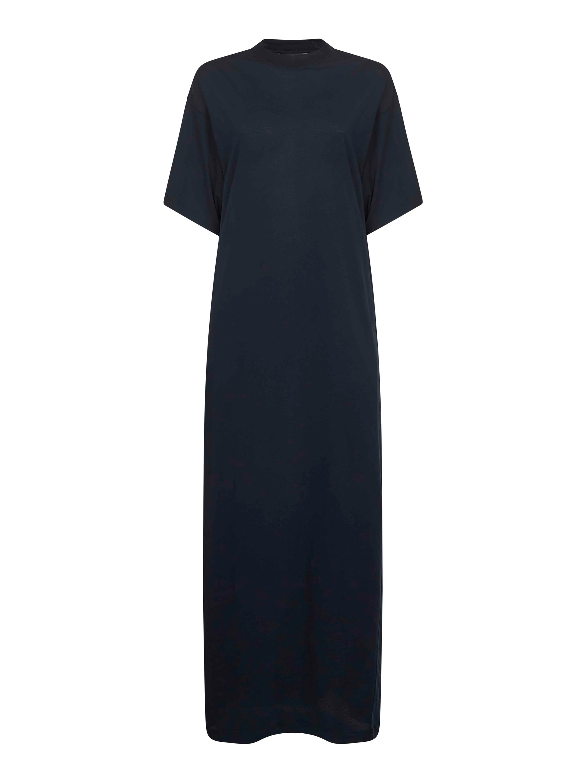 •Ribbed crewneck •Mid-length sleeves, dropped shoulders •Faded-effect thin jersey design •Maxi length •Oversize fit •Black color •100% Cotton •Made in Portugal