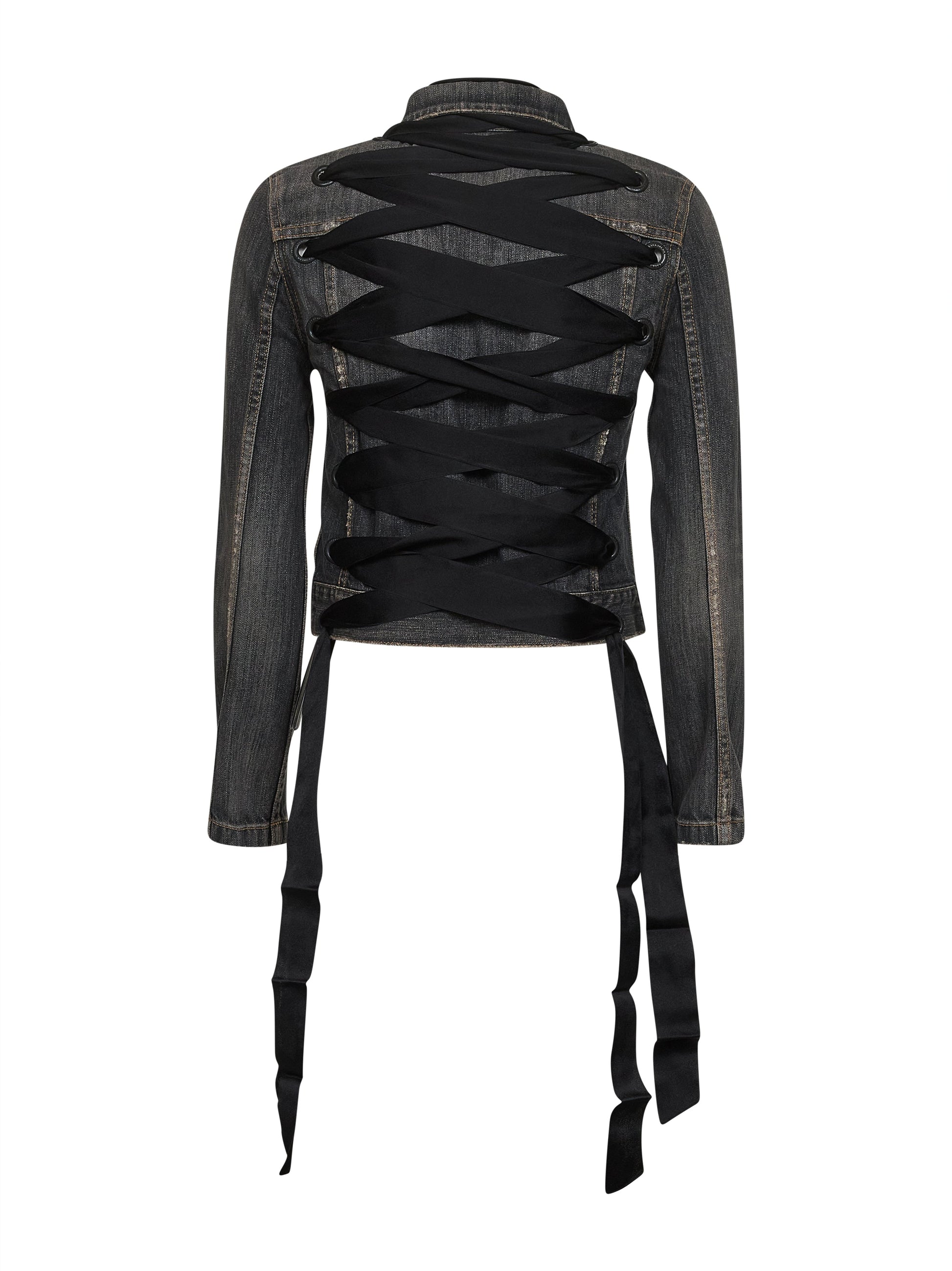Balenciaga Women Dark Grey Denim Lace-Up Jacket