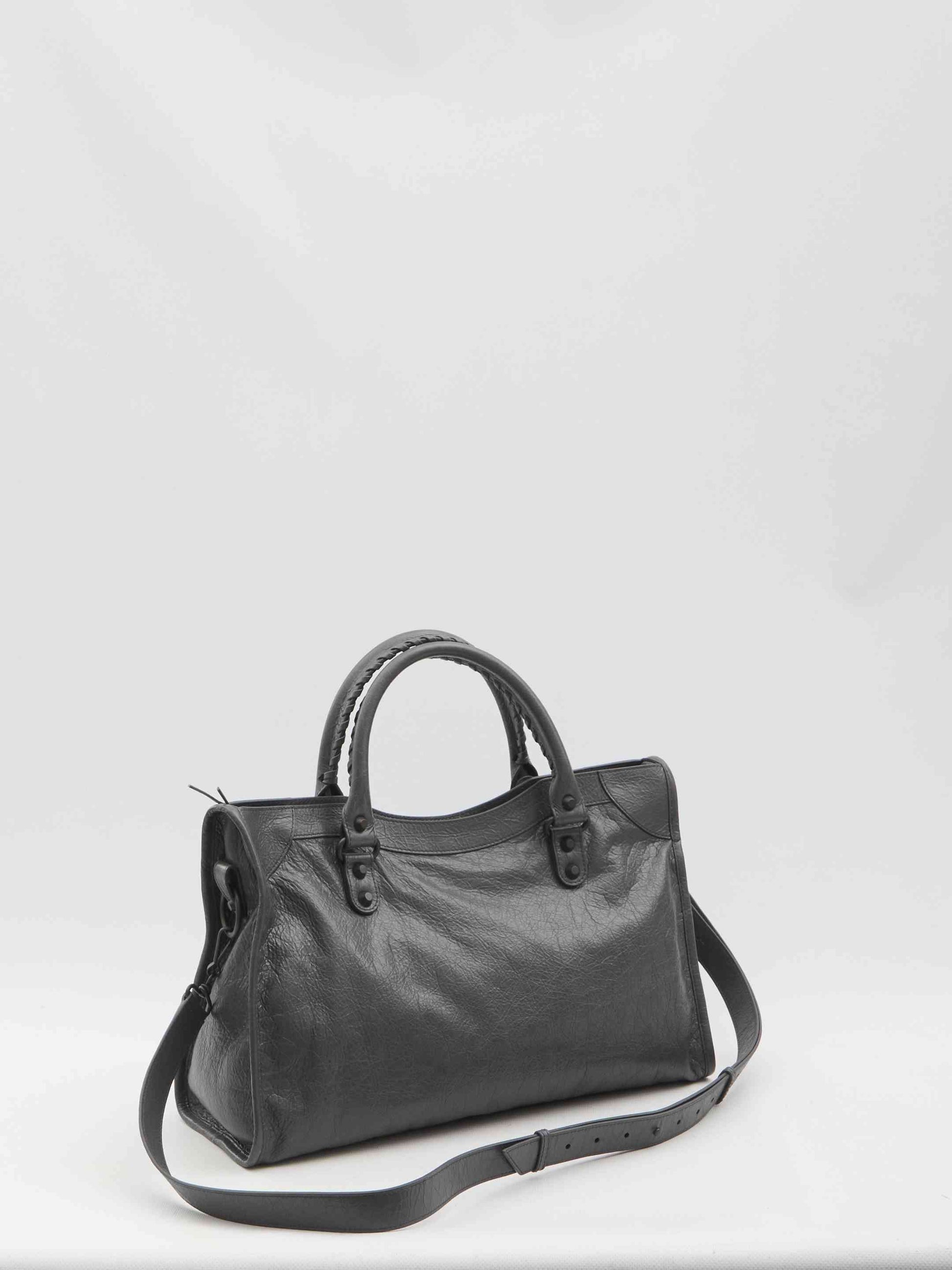 Le City medium bag in gray Arena Storico lambskin leather with brass hardware. It features hand-woven double leather handles, an adjustable and removable shoulder strap, a front zip pocket, zip closure, one main internal compartment, and an internal zip pocket. Cotton canvas lining. Dust bag included. Any imperfections in the leather are not manufacturing defects but a characteristic of the material.