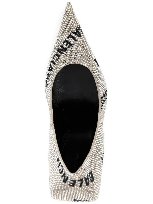 Balenciaga Women's All-Over Logo Rhinestone Square Knife Pumps Heel Silver