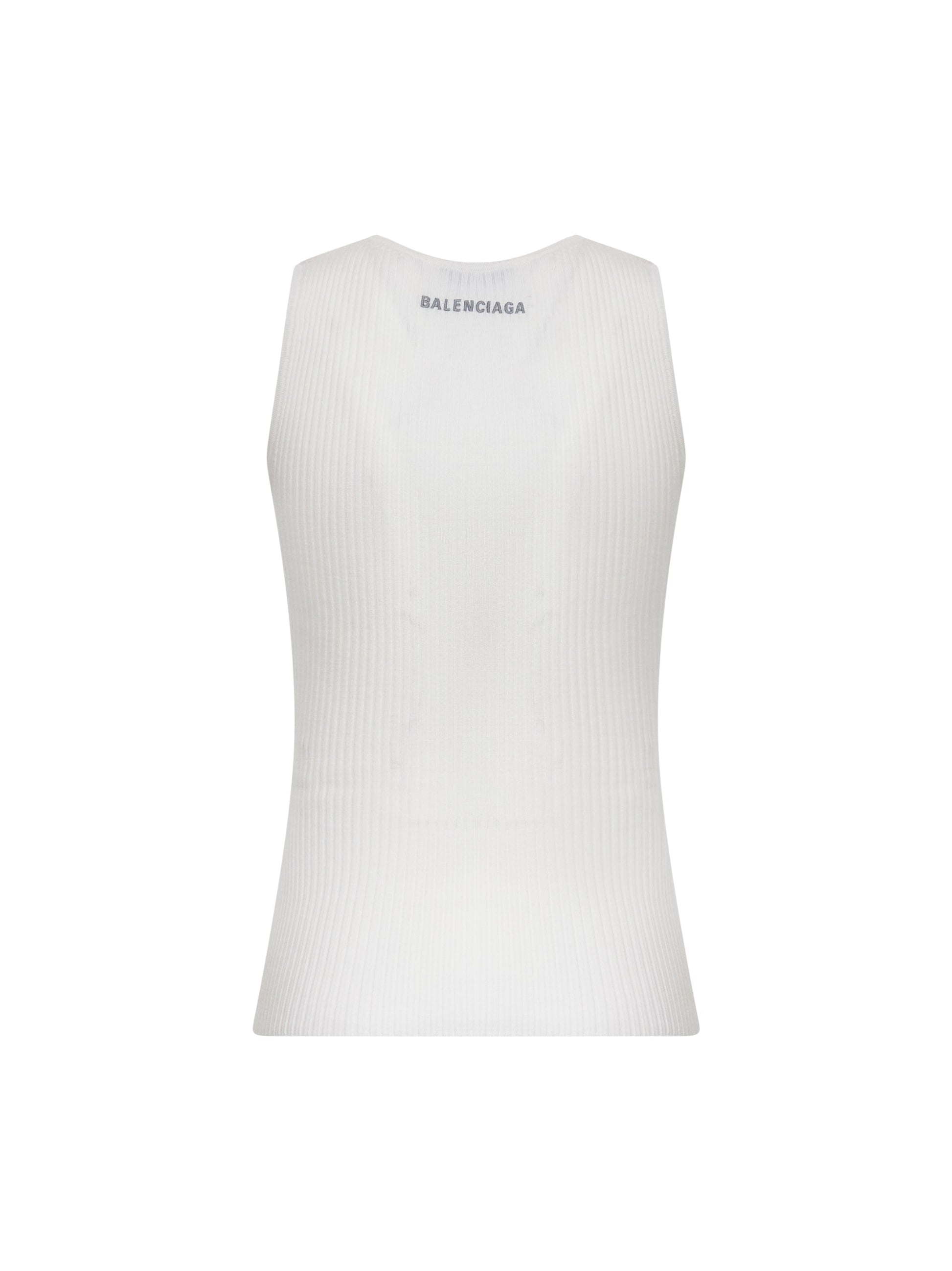 Balenciaga Women White Ribbed Wool Knit Tank Top
