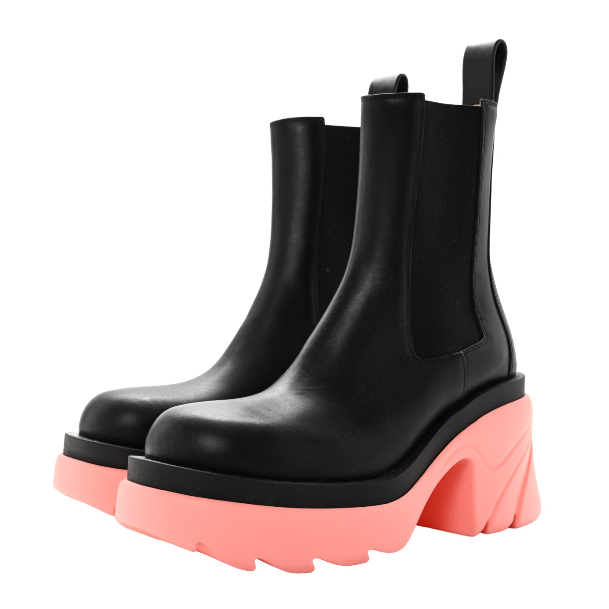 The Bottega Veneta The Flash Chelsea Boot is crafted from sleek black and pink calfskin and features a bold block heel. This Chelsea boot combines a striking color contrast with a sturdy design, showcasing the brand's commitment to high-quality materials and modern sophistication.US Shoe Size - 6EU Shoe Size - 36Shoe Color - Black,PinkShoe Material - CalfskinShoe Heel Height - 3.5Shoe Toe Shape - Round ToeShoe Closure Type - Pull OnMSRP - 1640.00