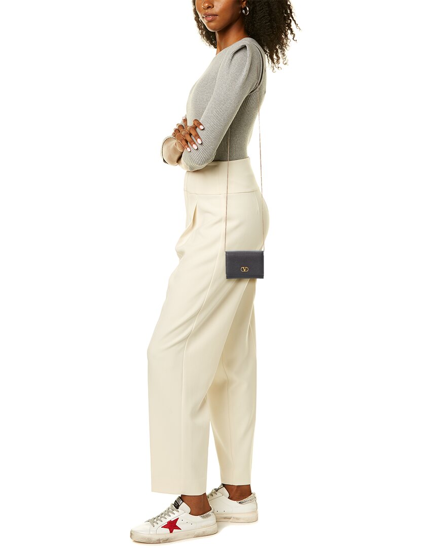 - Vlogo Leather Card Holder In Black Leather And Gold-Tone Hardware With Vlogo, Ring Accent And Chain Strap