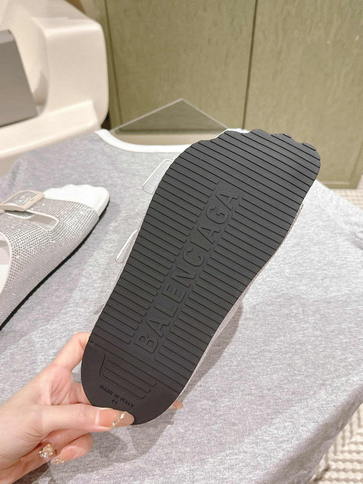 Balanciaga BIRKENSTOCK SLIPPERS ATTACHED RHINESTONES IN WHITE CALFSKIN