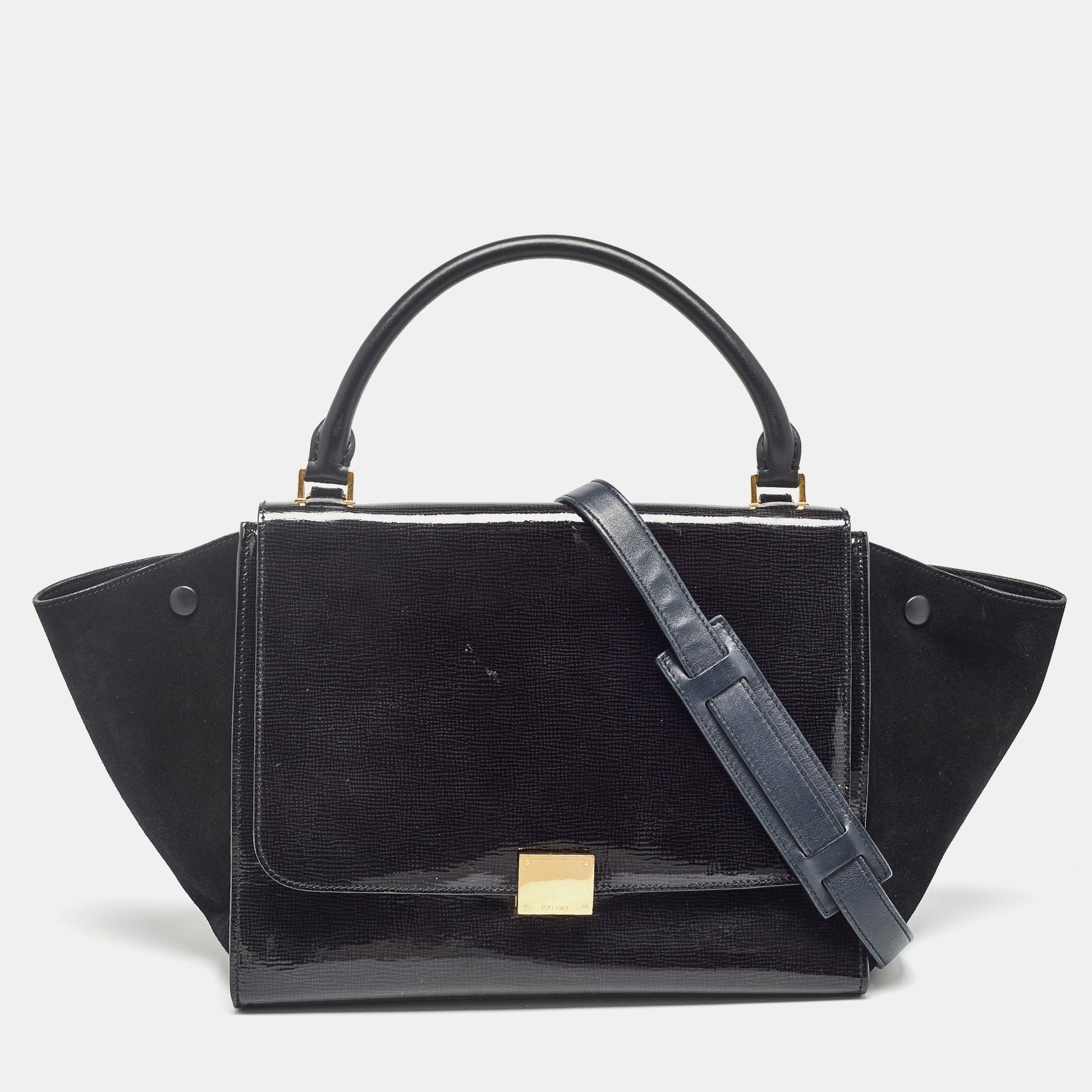 Celine Black Patent Leather and Suede Medium Trapeze Top Handle Bag