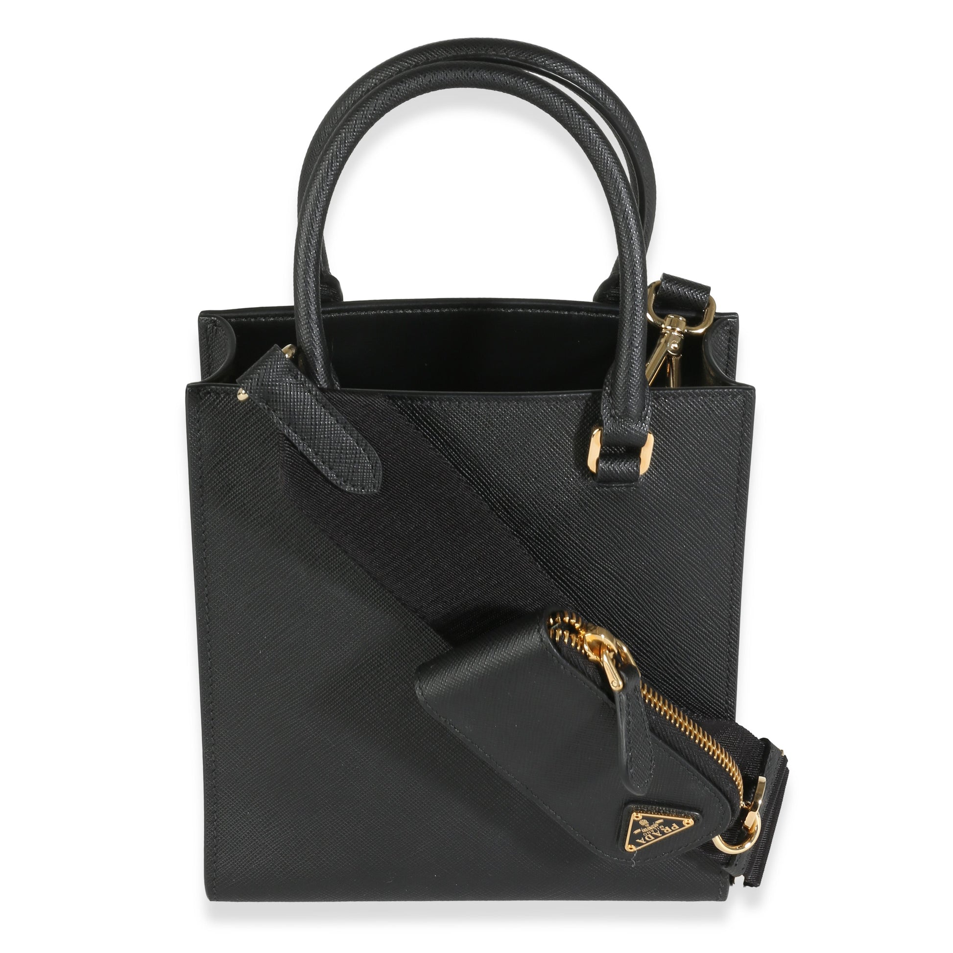 PRADA - Black Saffiano Lux Embossed Logo Mini Tote Crossbody Bag