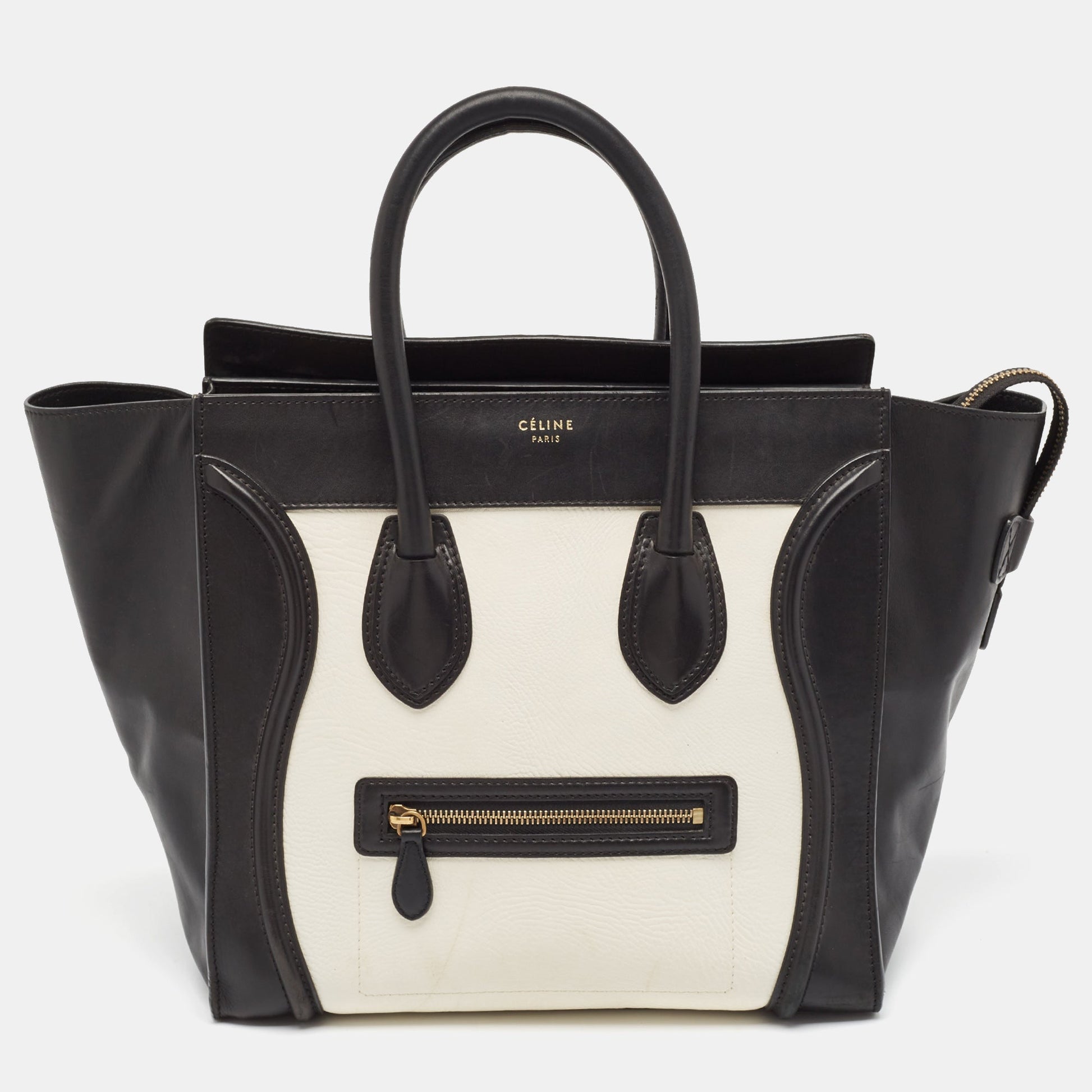 Celine Black/White Leather Mini Luggage Tote