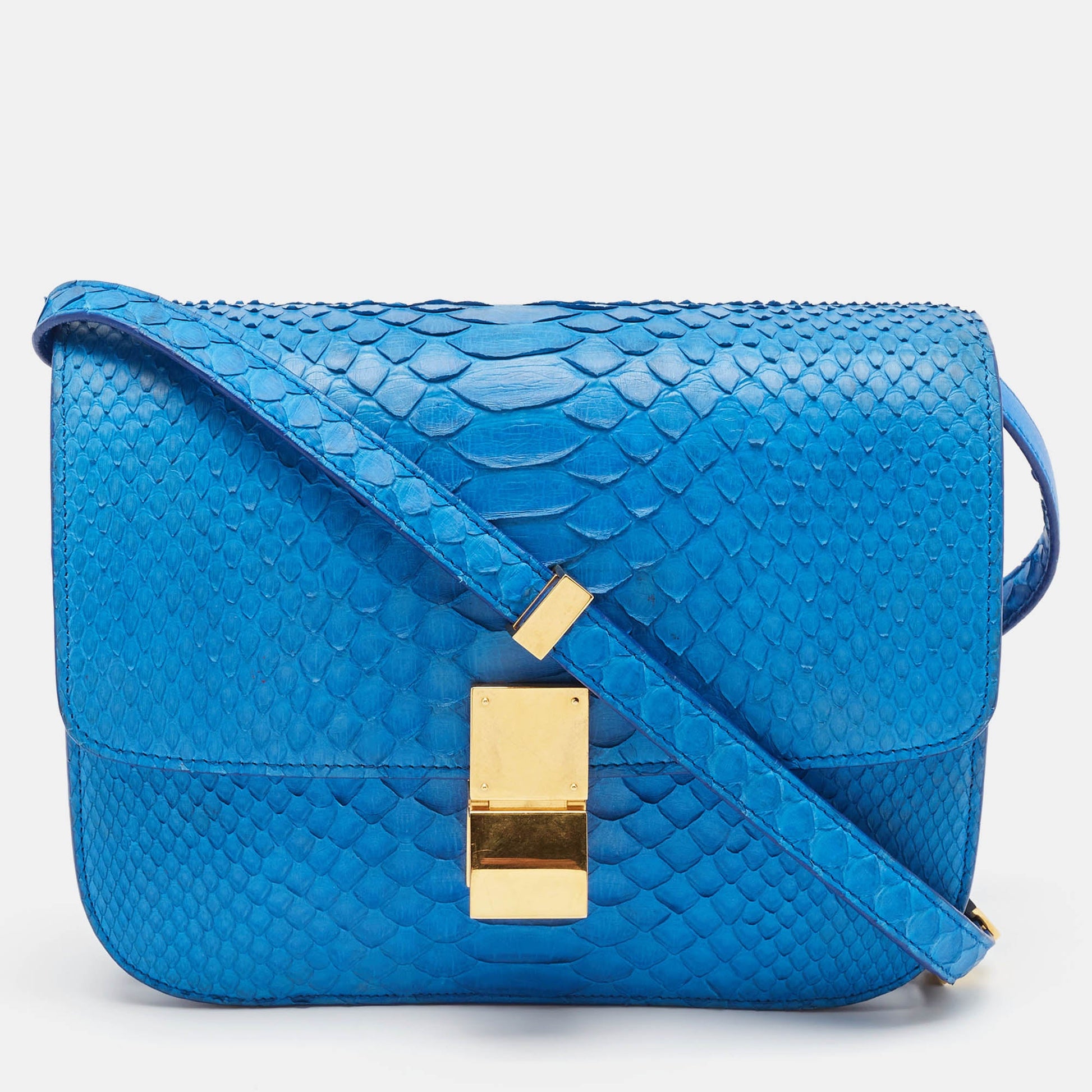 Discover the Celine Blue Python Medium Classic Box Shoulder Bag, a stunning addition to the world of designer luxury handbags. Crafted from premium python leather, this bag combines elegance and practicality, making it perfect for any occasion. With its iconic design and Celine's quality, you can trust this investment piece to elevate your style. Use our price comparison platform to explore options and find the best deals when you buy luxury handbags online. Our site is dedicated to providing trusted information about luxury brands, ensuring you make informed choices while enjoying the prestige of owning a Celine bag.