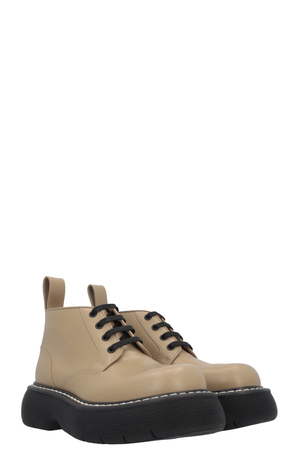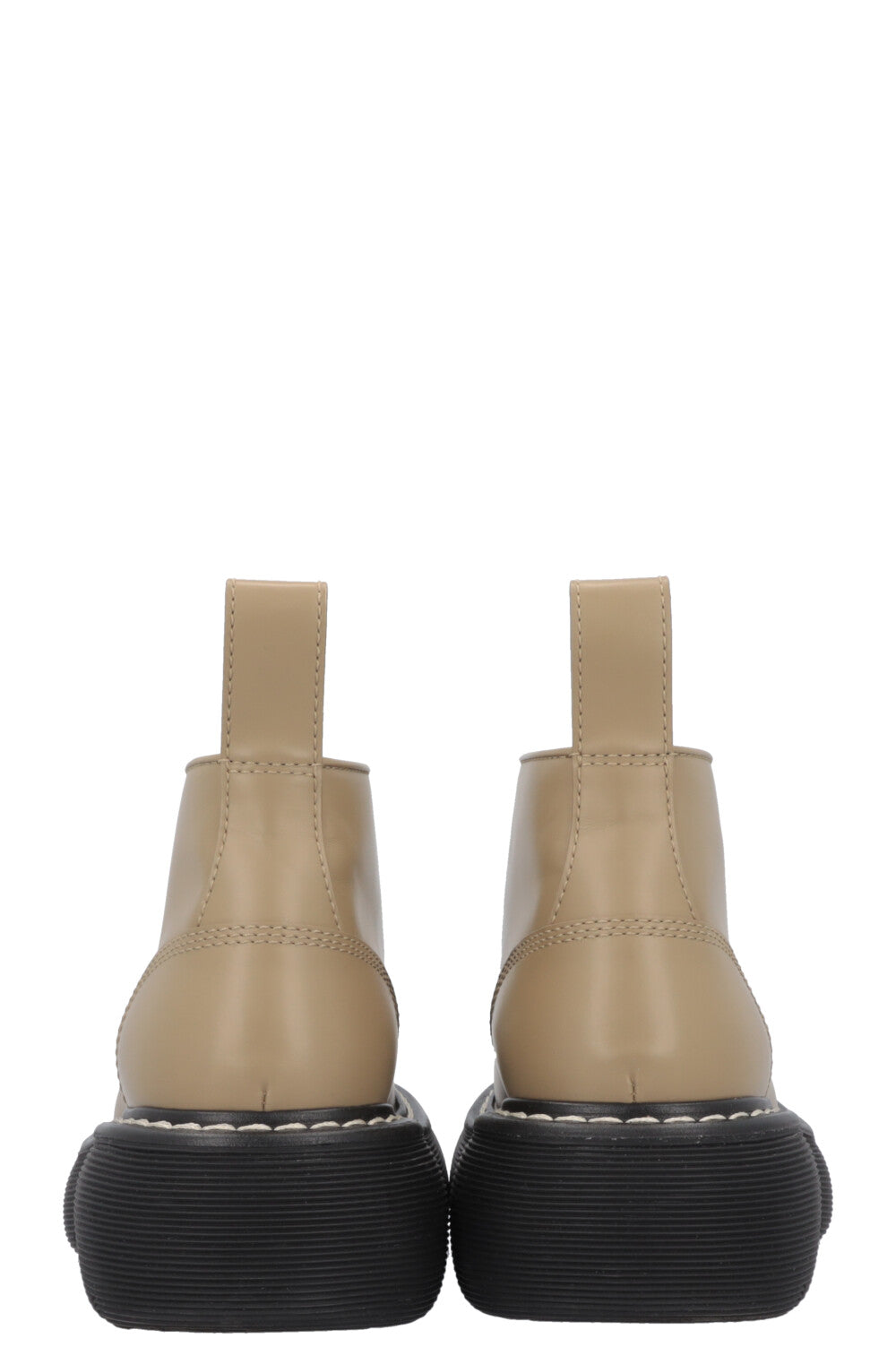 Die Bottega Veneta Ankle Boots in Khaki bestechen durch ihre klare, minimalistische Form und die auffällige, kontrastierende Sohle. Das hochwertige Leder in Khaki sorgt für vielseitige Kombinationsmöglichkeiten, während die markante Sohle den Boots einen einzigartigen Charakter verleiht. Diese Boots sind ein perfektes Accessoire, das sich sowohl für elegante als auch für entspannte Outfits eignet und jedem Look eine gewisse Extravaganz verleiht.