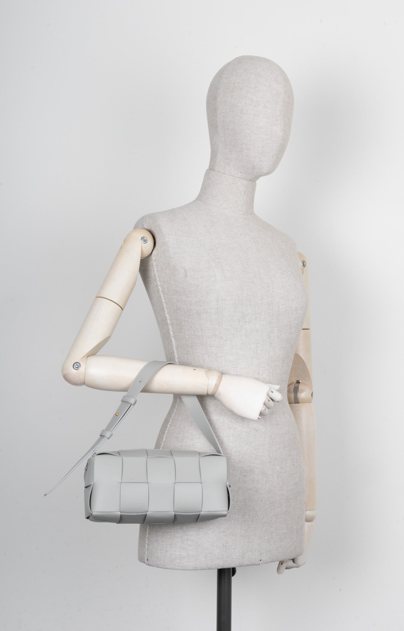 BOTTEGA VENETA Brick Intrecciato Shoulder Bag Small Grey