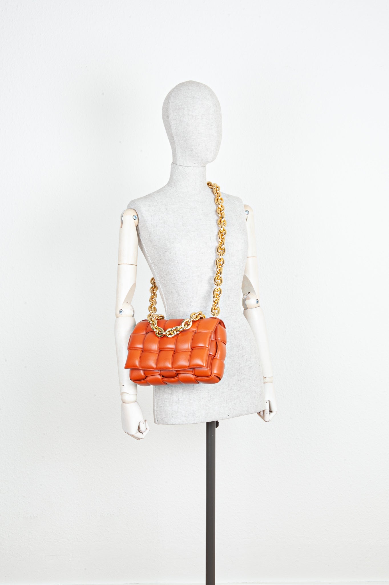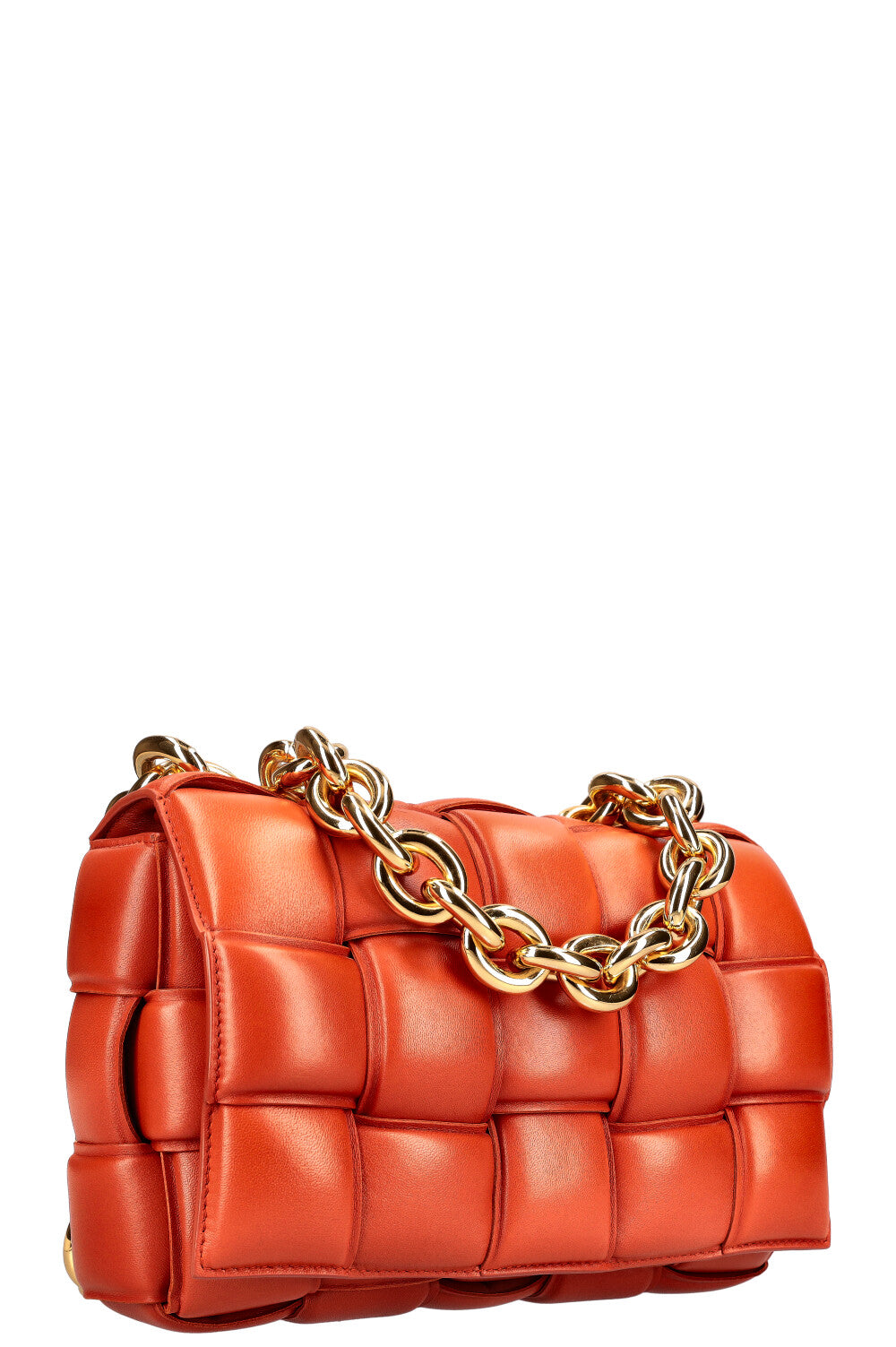We Love: Die grössere Interpretation des klassischen Intrecchiatos kreiert ein wahres Statement Piece, die Chain Cassette Bag. Mit ebenso auffälliger Schulterkette versehen. Wunderschön warmer Brick Farbton