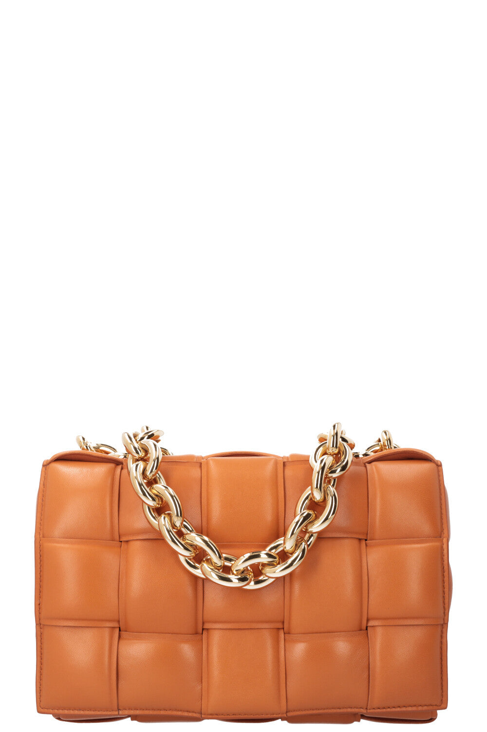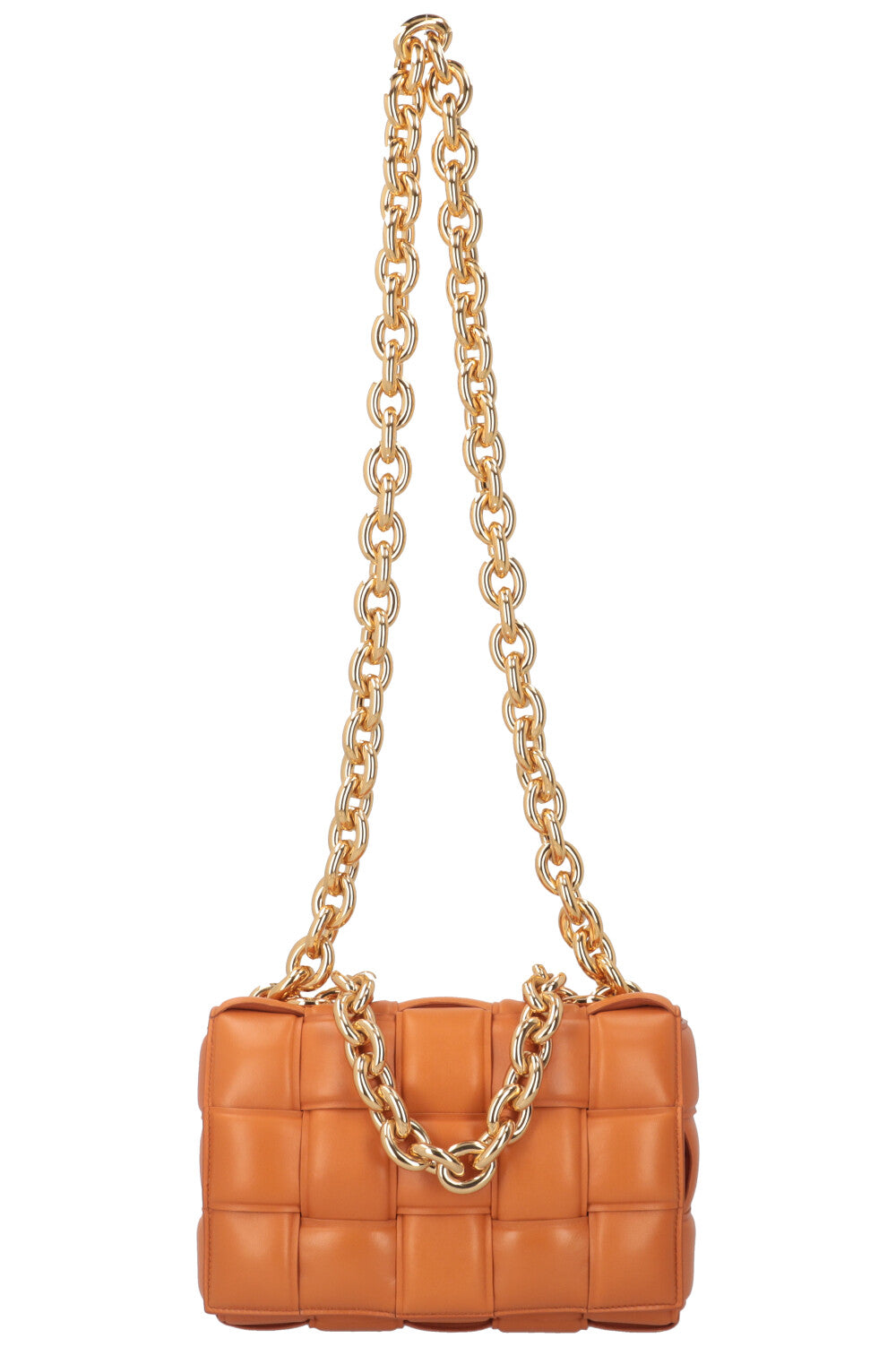 We Love: Die grössere Interpretation des klassischen Intrecchiato's kreiert ein wahres Statement Piece, die Chain Cassette Bag. Mit ebenso auffälliger Schulterkette versehen. Zeitloser Chalk Farbton