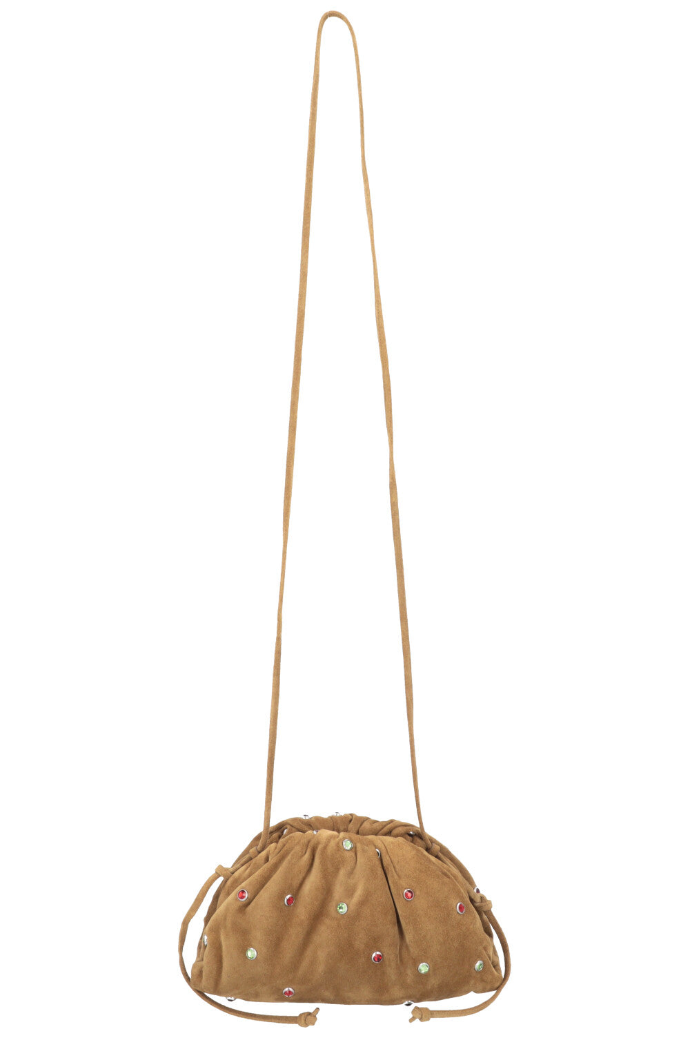 BOTTEGA VENETA Mini Pouch Suede Rhinestone Olive
