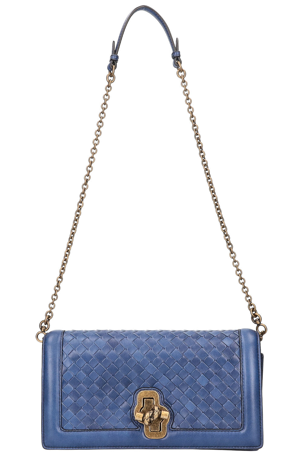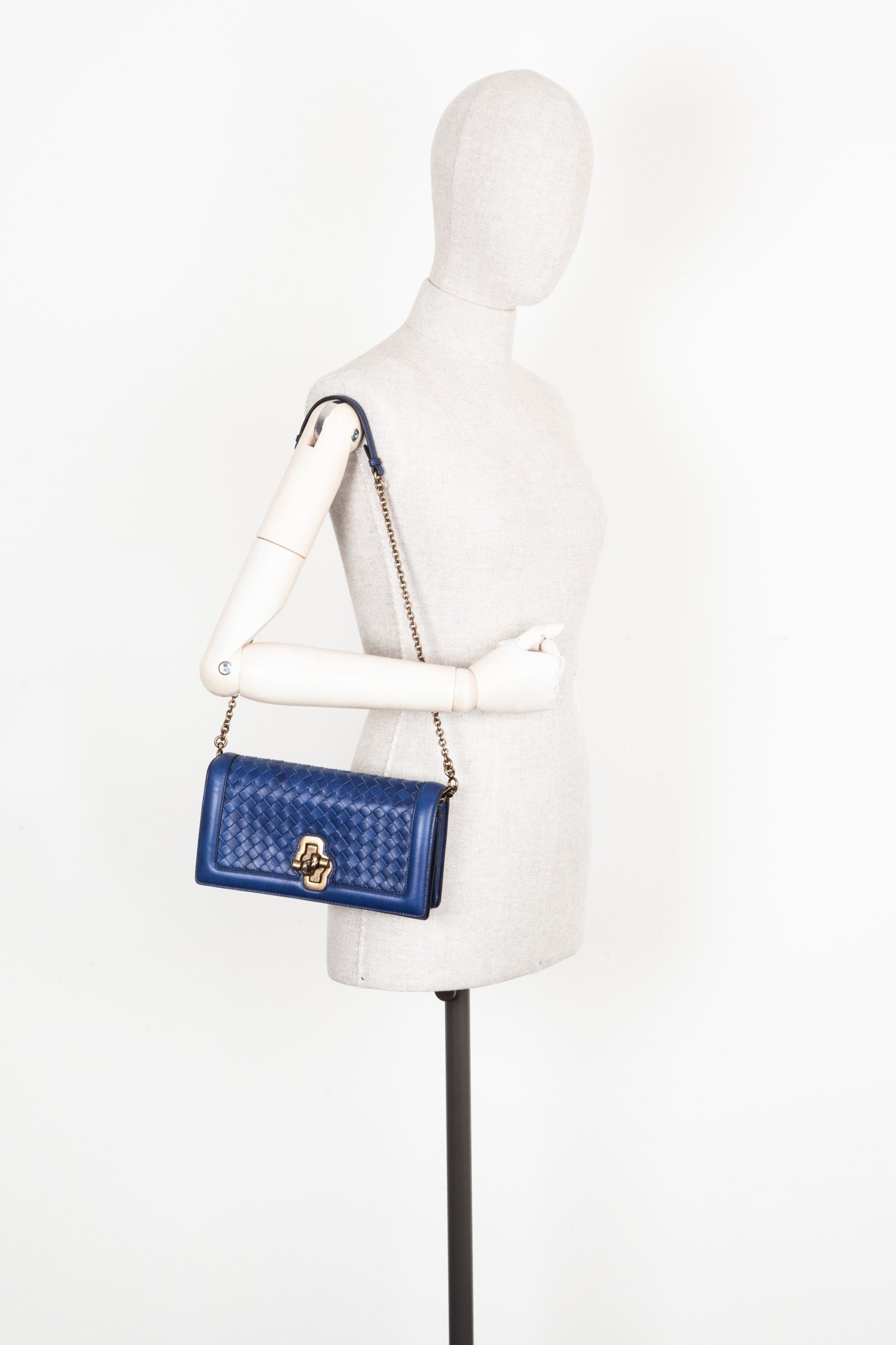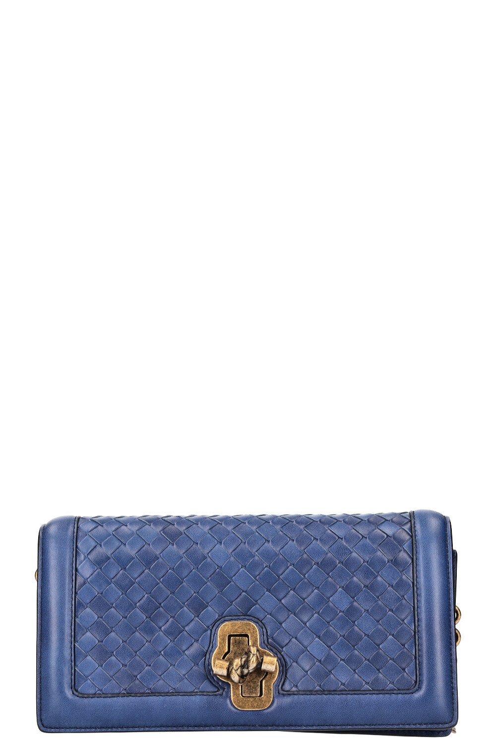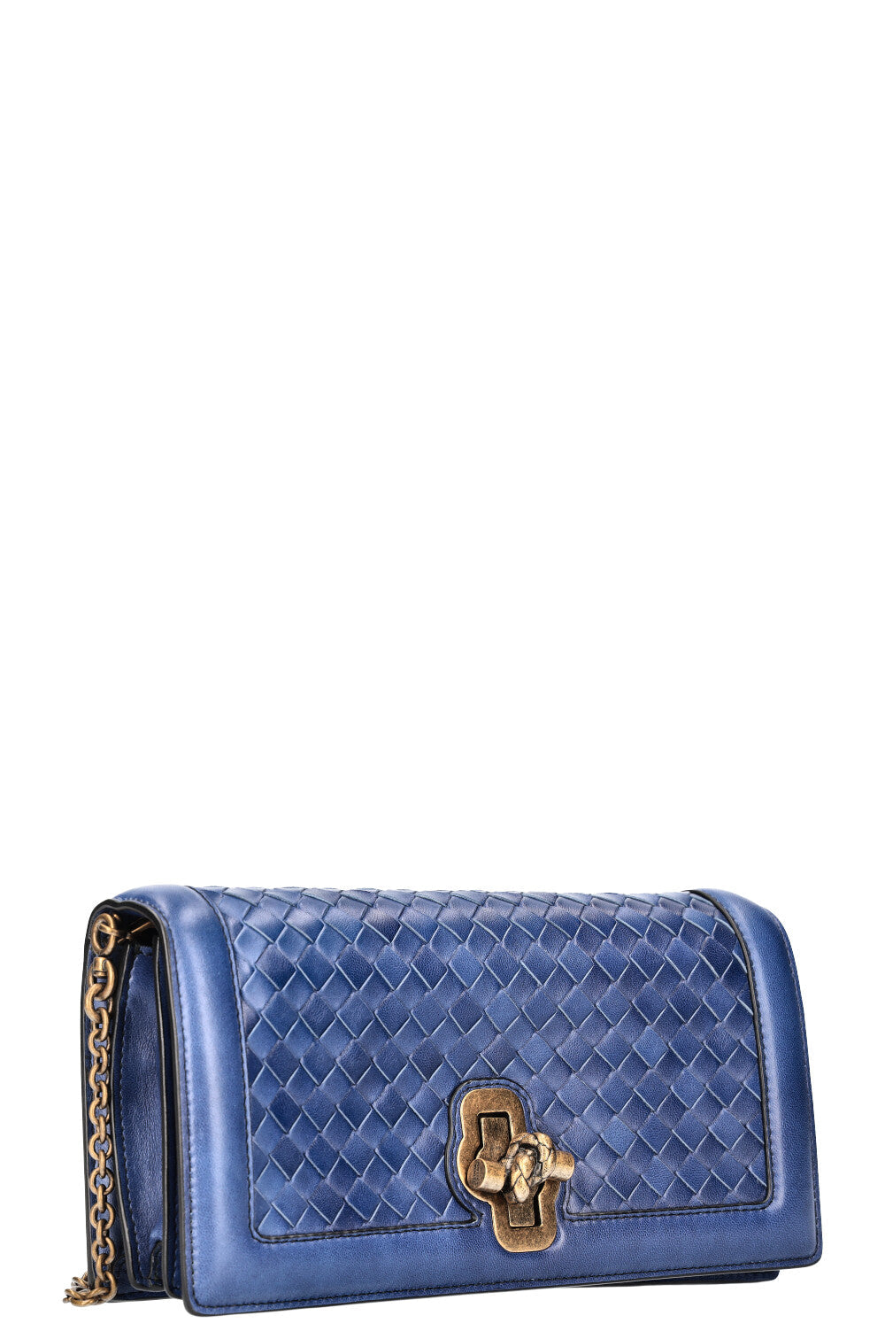 BOTTEGA VENETA Olimpia Knot Clutch Intrecciato Blue