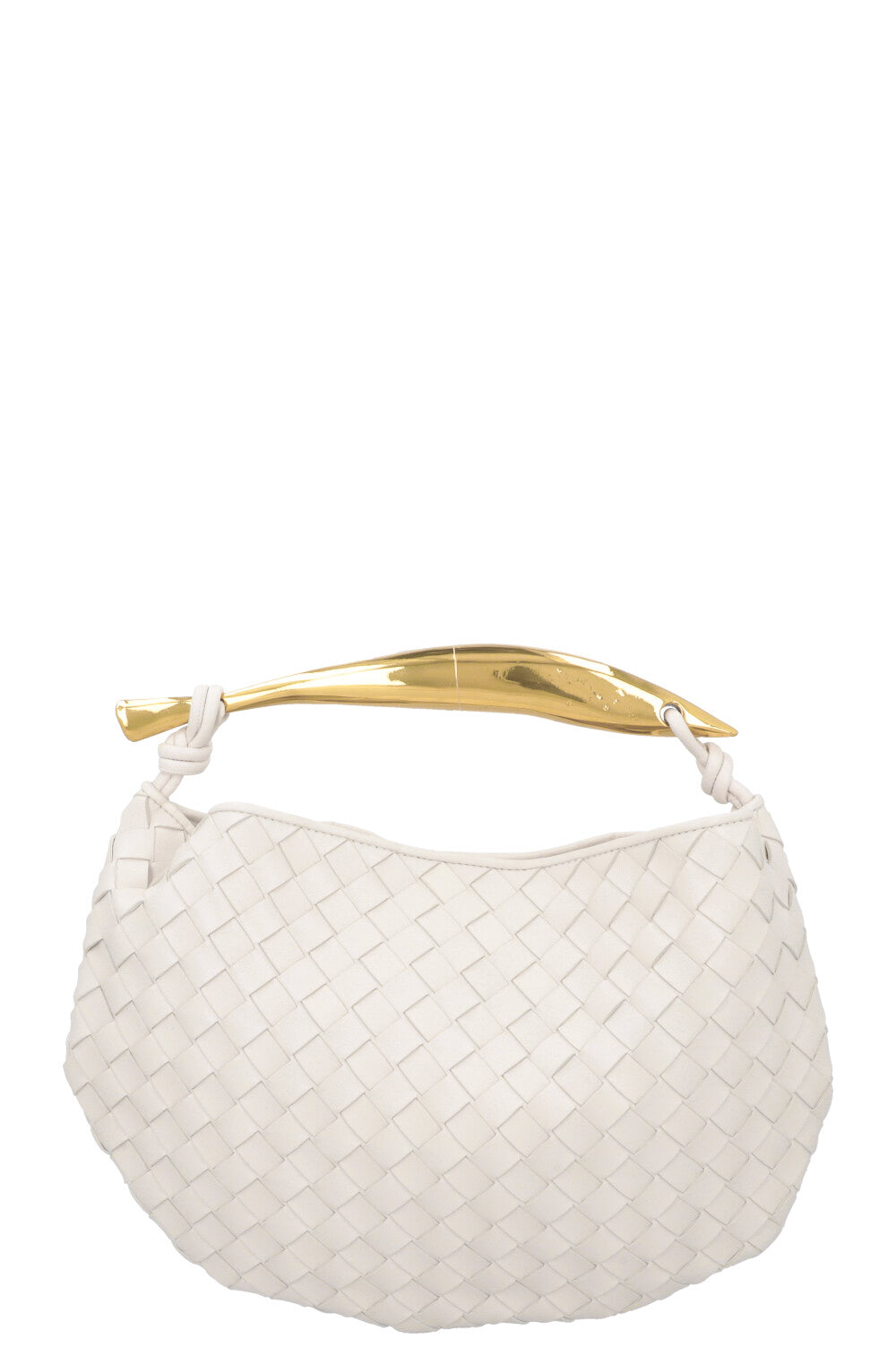 Die Bottega Veneta Sardine Classic Bag in Chalk ist ein wahres Meisterwerk der Handwerkskunst. Der metallische Griff der Tasche, von erfahrenen Kunsthandwerkern gefertigt, zeigt feine Nuancen und eingravierte Details, die jedes Stück einzigartig machen. Besonders auffällig ist der Griff, dessen Form an eine Sardine erinnert – daher auch der Name der Tasche.
