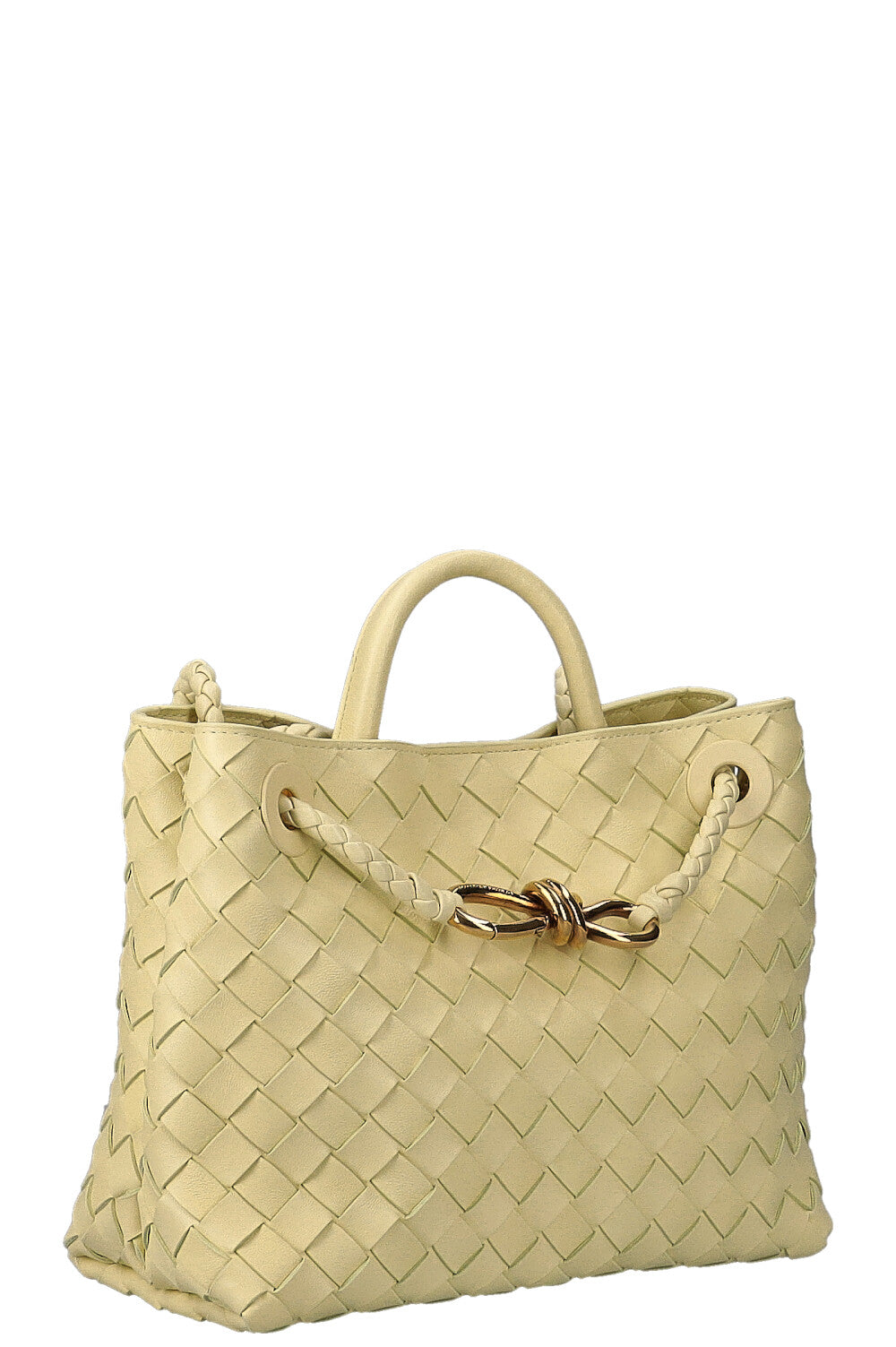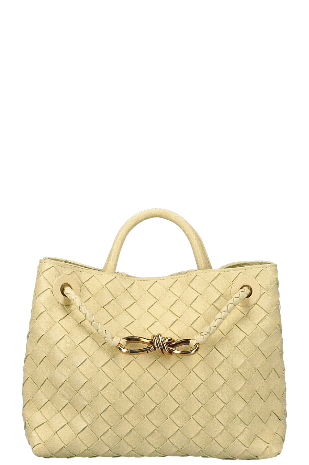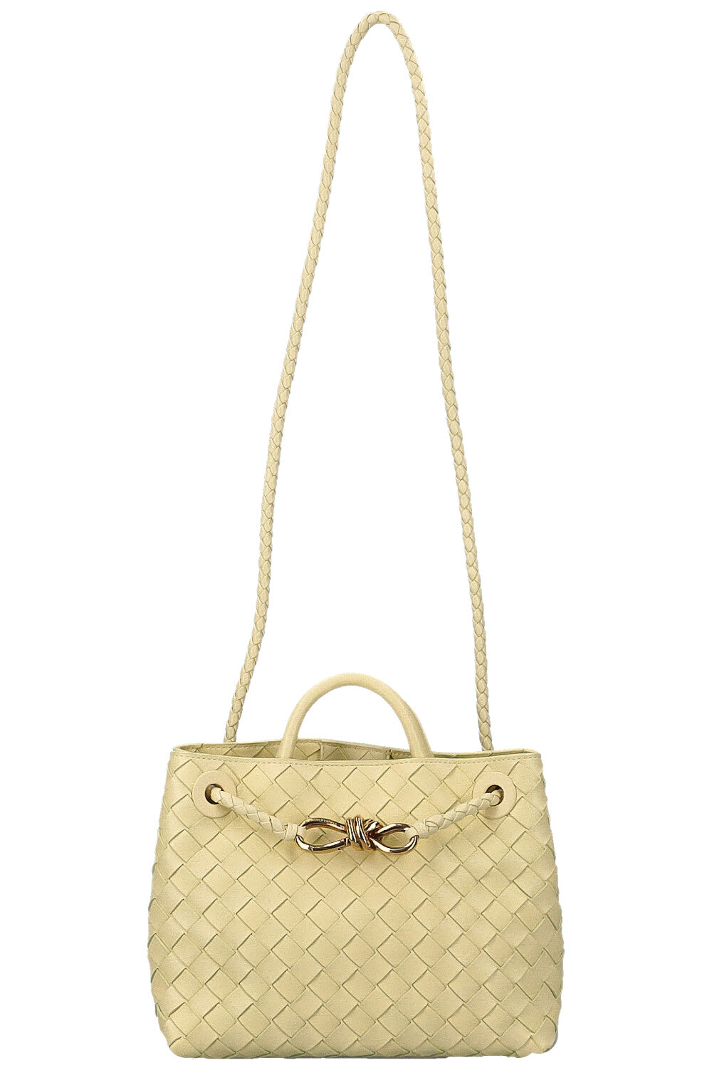 We Love: Klassisches Intrecciato mit signature Knot Detail. Die Andiamo lässt sich sowohl Crossbody als auch auf der Schulter mit doppeltem Schulterhenkel tragen.