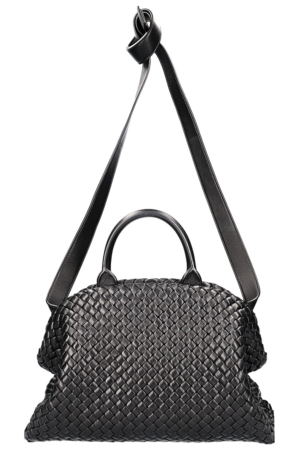 We Love: Gepolsterte Intrecciato Ledertasche mit Henkel und abnehmbarem Schulterriemen