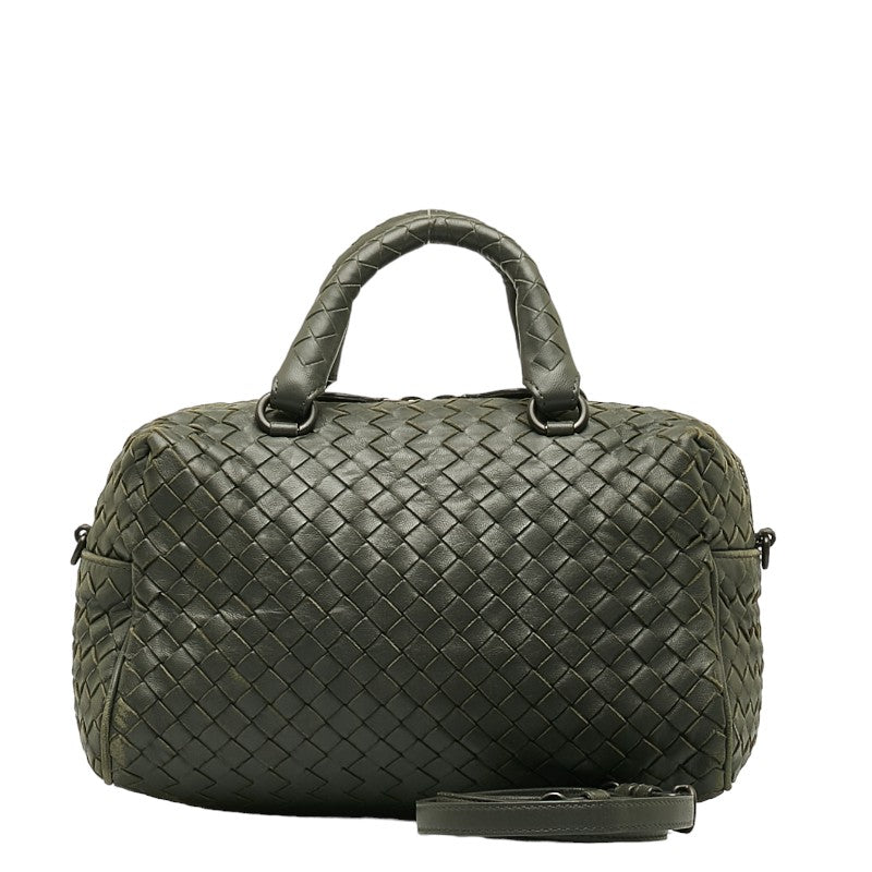 Bottega Veneta Intrecciato Mini Boston Bag in Leather Grey