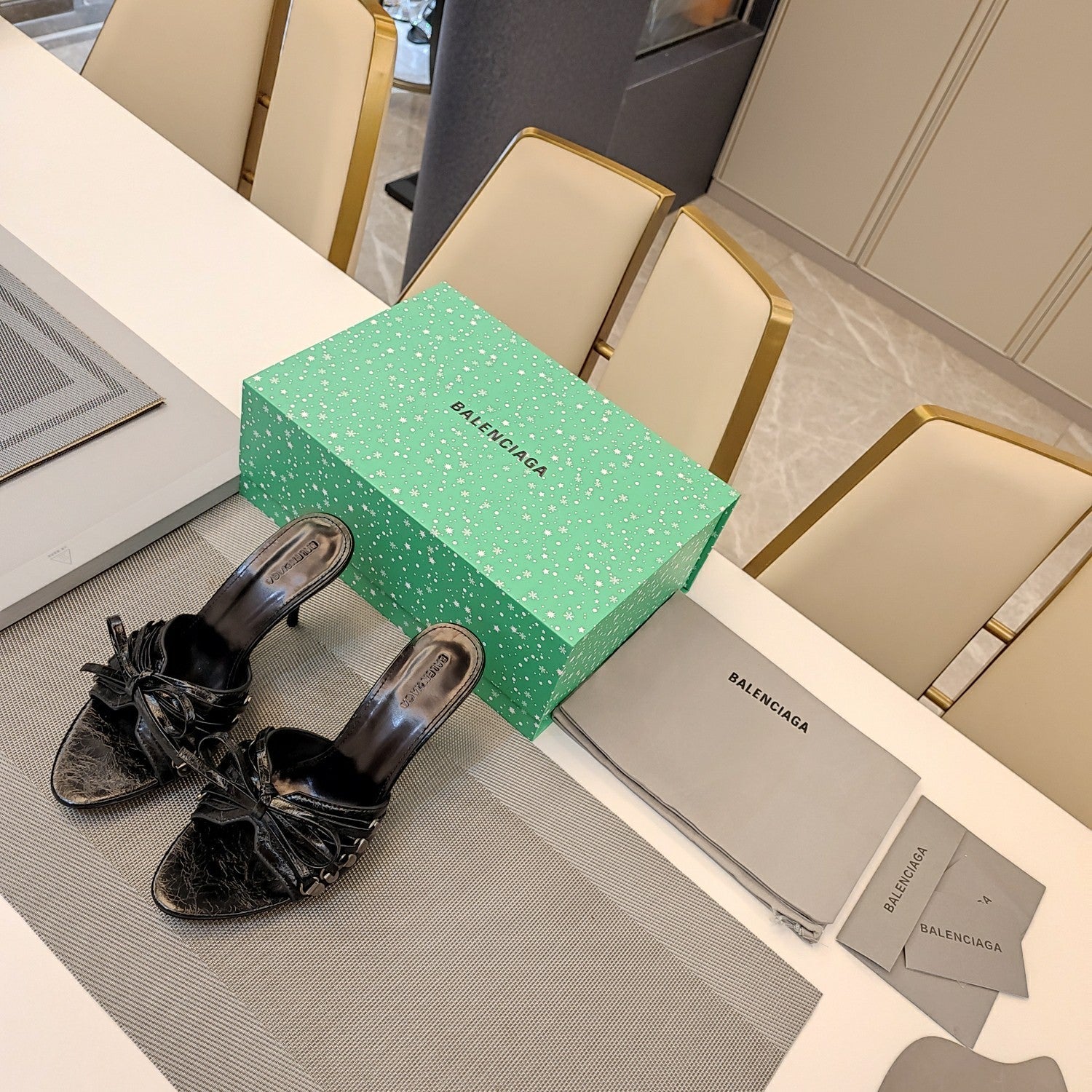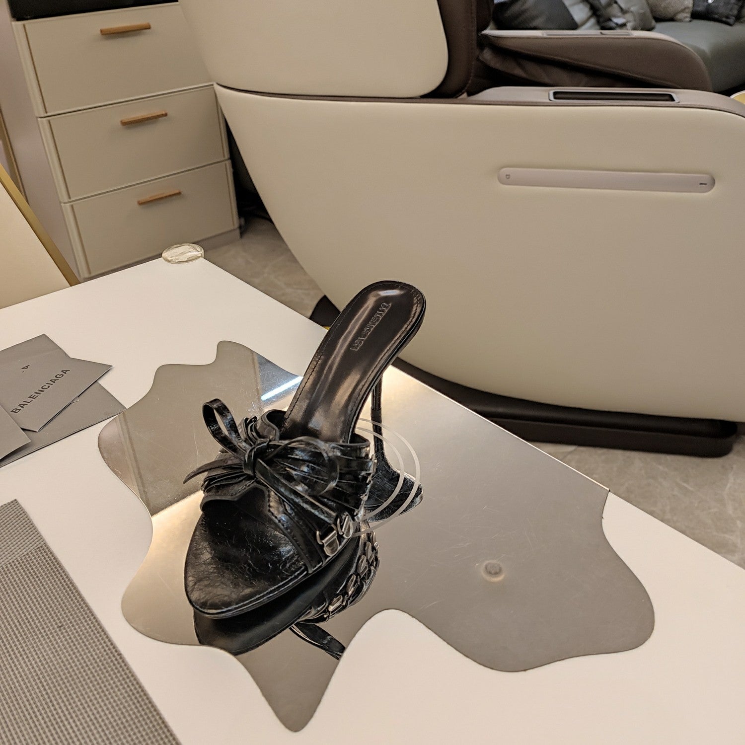 Balanciaga BOW-EMBELLISHED HIGH MULES IN BLACK SHEEPSKIN